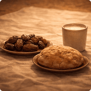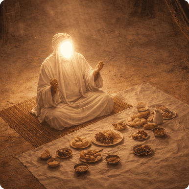 سفرۀ افطارش همیشه ساده و از خرما، نان جو و یا شیر بود