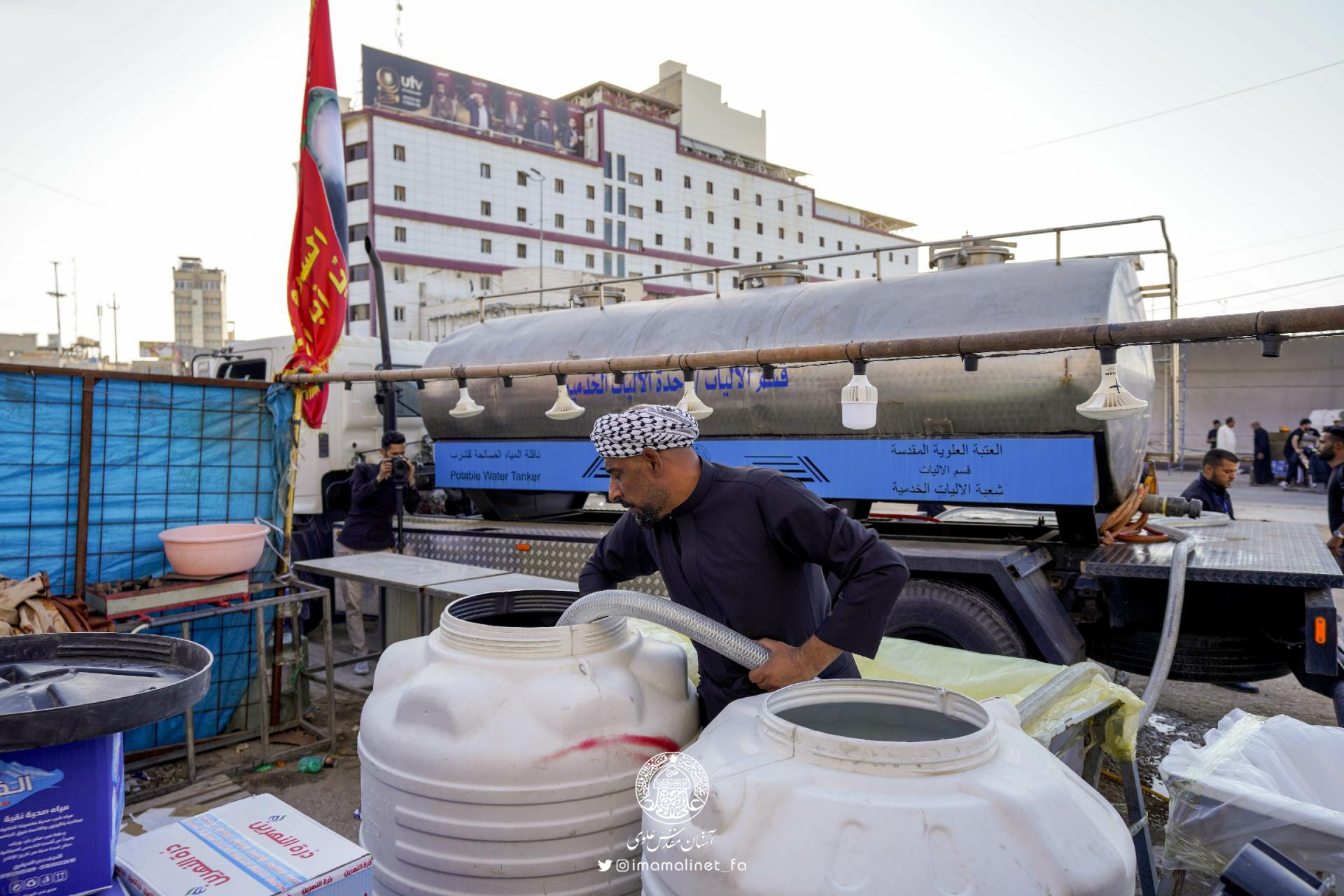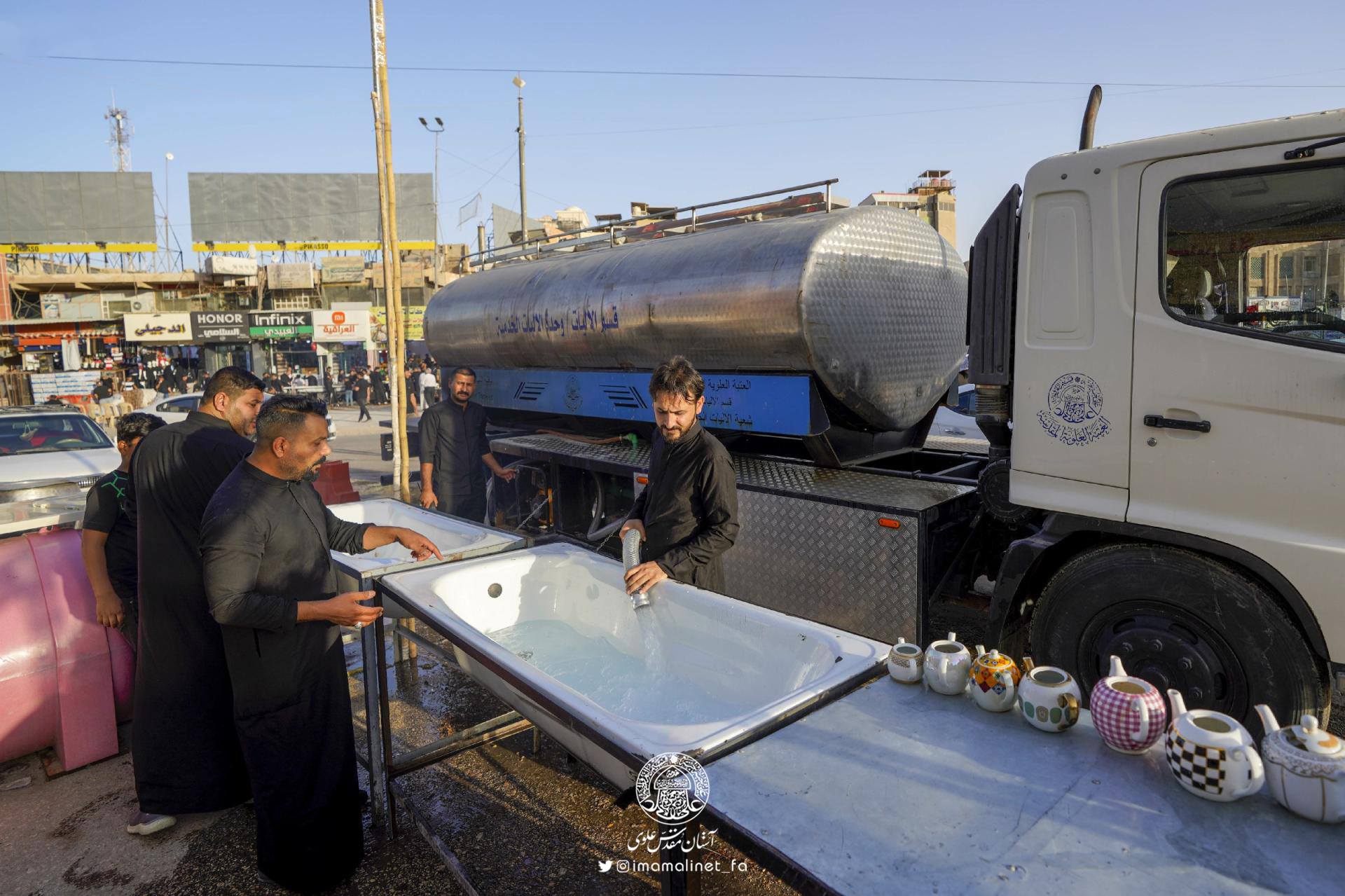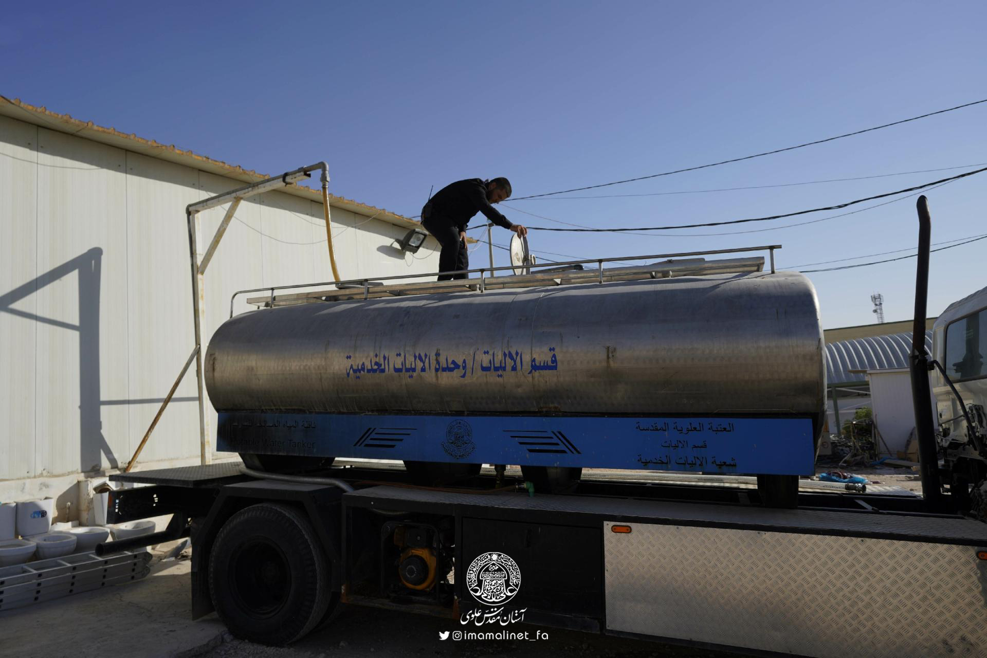 لفته ادامه داد: «در این راستا، بخش خودروهای خدماتی، آب آشامیدنی و آب پخت غذا را میان هیئتهای حسینی در چهار نقطه غربی و شرقی صحن مطهر و محله قدیمی شهر نجف و منطقه الحولی توزیع کرده است.»
