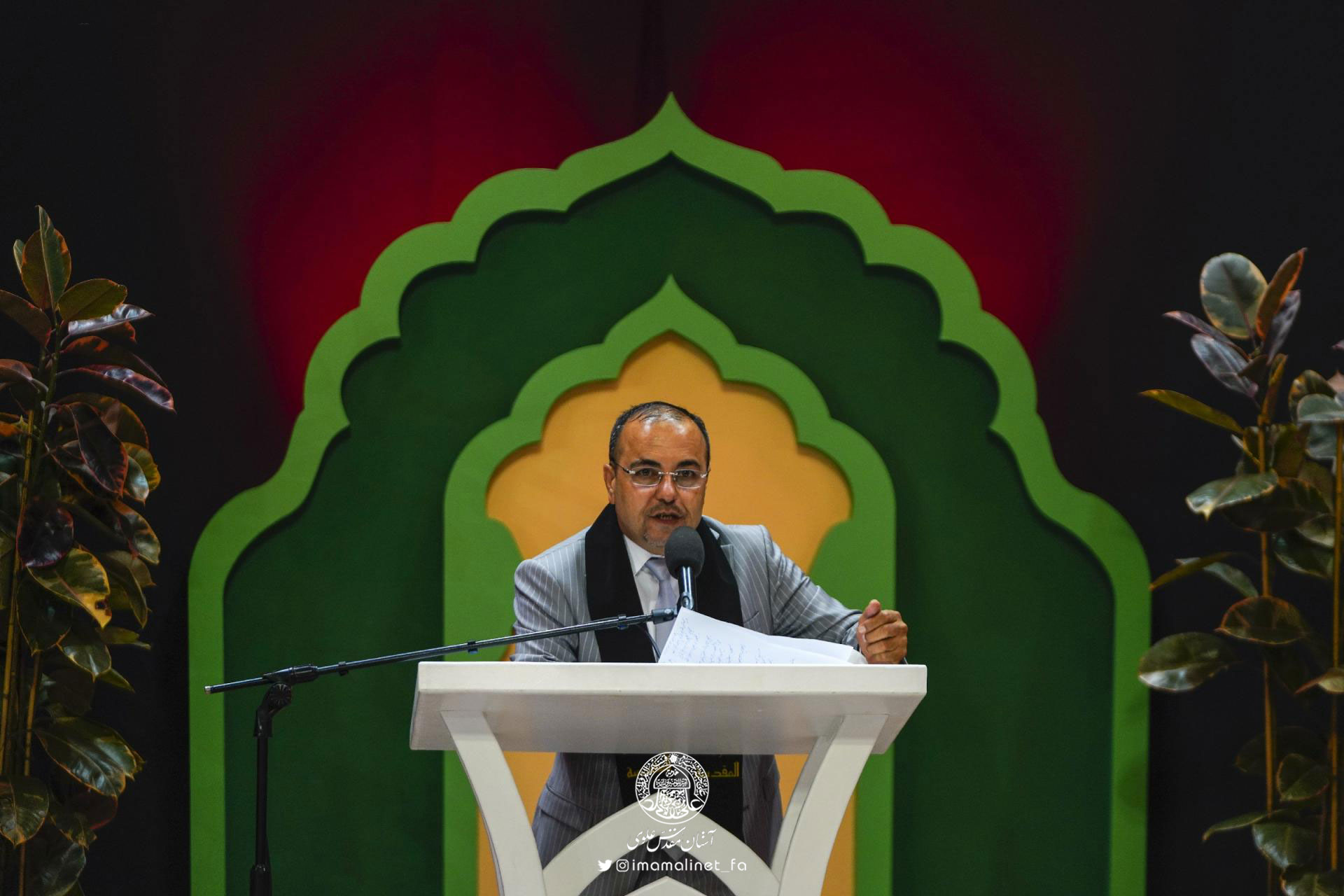 قفطان افزود: «امروز به تمام آزادگان و فرهیختگان جهان میگوییم که حسین علیهالسلام نقطه شروع سخن رسا و شیوای ماست. حسین علیهالسلام نقطه شروع اشعار و سرودههای ماست و قلم ما در خدمت به امام حسین علیهالسلام است و برای ایشان مینویسد. همچنان که از خطمشی و زندگی امام حسین علیهالسلام بهره میبریم تا برای زندگی بنویسیم. چون حسین همان راه و رسم زندگی است که باید برای فرزندانمان و نسلهای آینده و دوستدارانش به قلم بیاید و نوشته شود. به همین ترتیب از فداکاریهای حسین علیهالسلام و اصول و مبادی بزرگش الهام میگیریم و خطمشی زندگی خود را در قالب قصیده و سخن منظوم به دنیا ارائه میدهیم.»