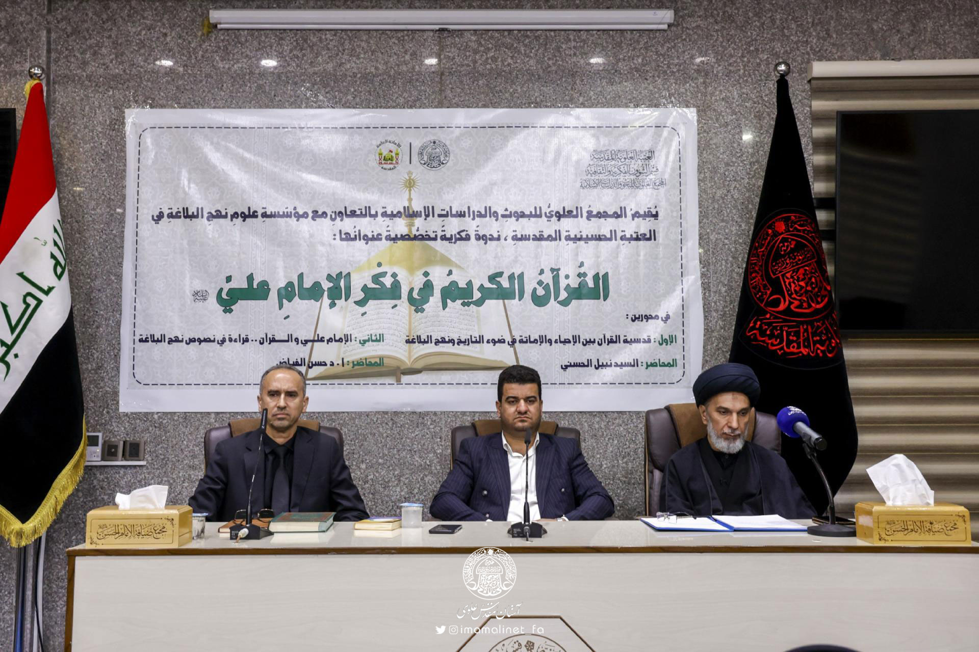 مرکز مطالعات و پژوهشهای اسلامی علوی، وابسته به امور فکری و فرهنگی آستان مقدس علوی، با همکاری مؤسسه «علوم نهجالبلاغه» آستان مقدس حسینی، نشست «قرآن در تفکر امام علی علیهالسلام» را با حضور جمعی از اساتید و طلاب حوزه علمیه و دانشگاهیان برگزار کرد.