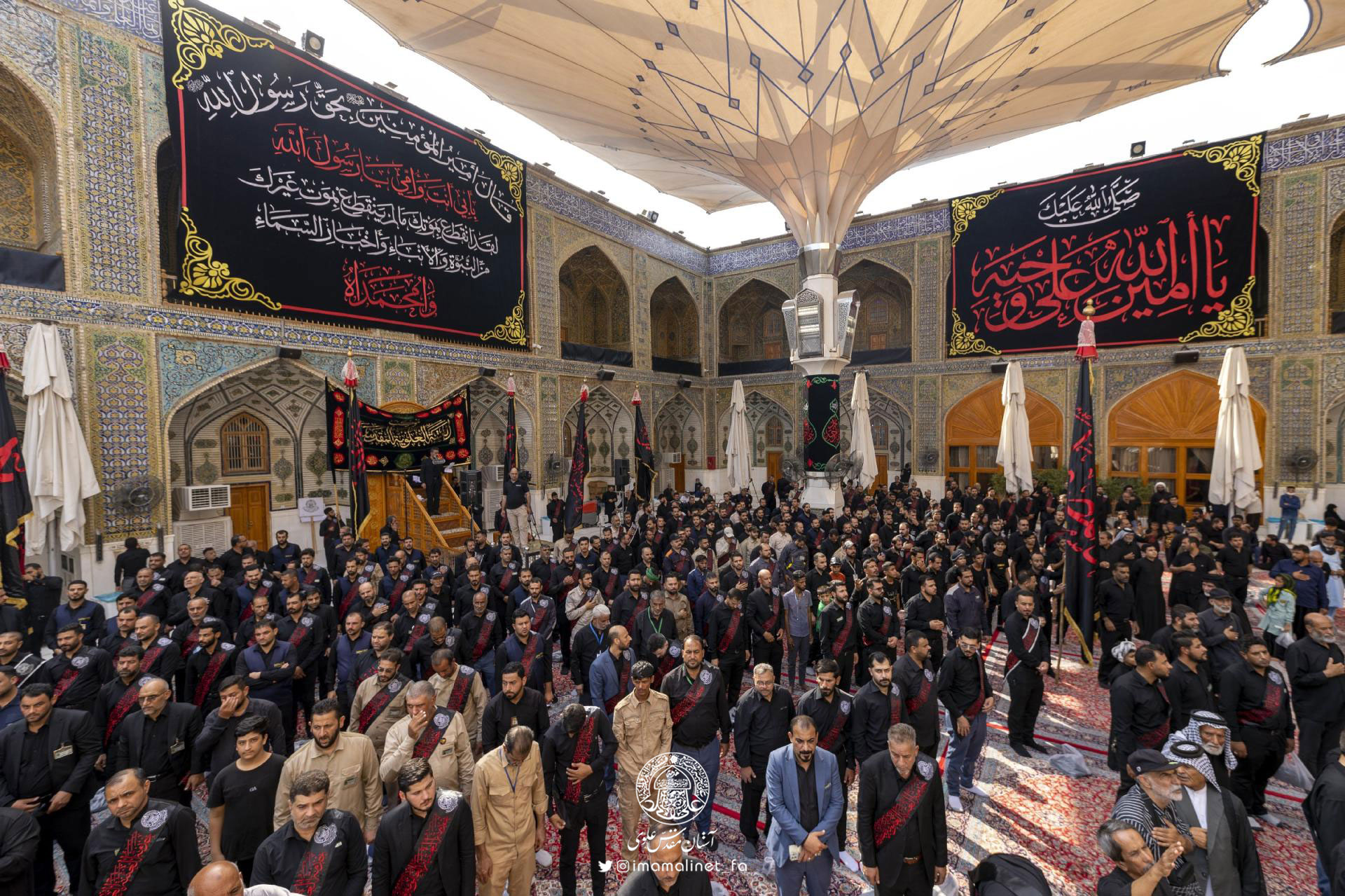 خادمان حرم مطهر علوی از باب الفرج در جوار صحن حضرت فاطمه سلام‌الله‌علیها تا صحن مطهر علوی مراسم عزا برگزار کردند. آنان در این مراسم سالروز رحلت رسول اکرم صلی‌الله‌علیه‌وآله، مصادف با بیست و هشتم ماه صفر را به محضر امیرالمؤمنین علیه‌السلام تسلیت گفتند.