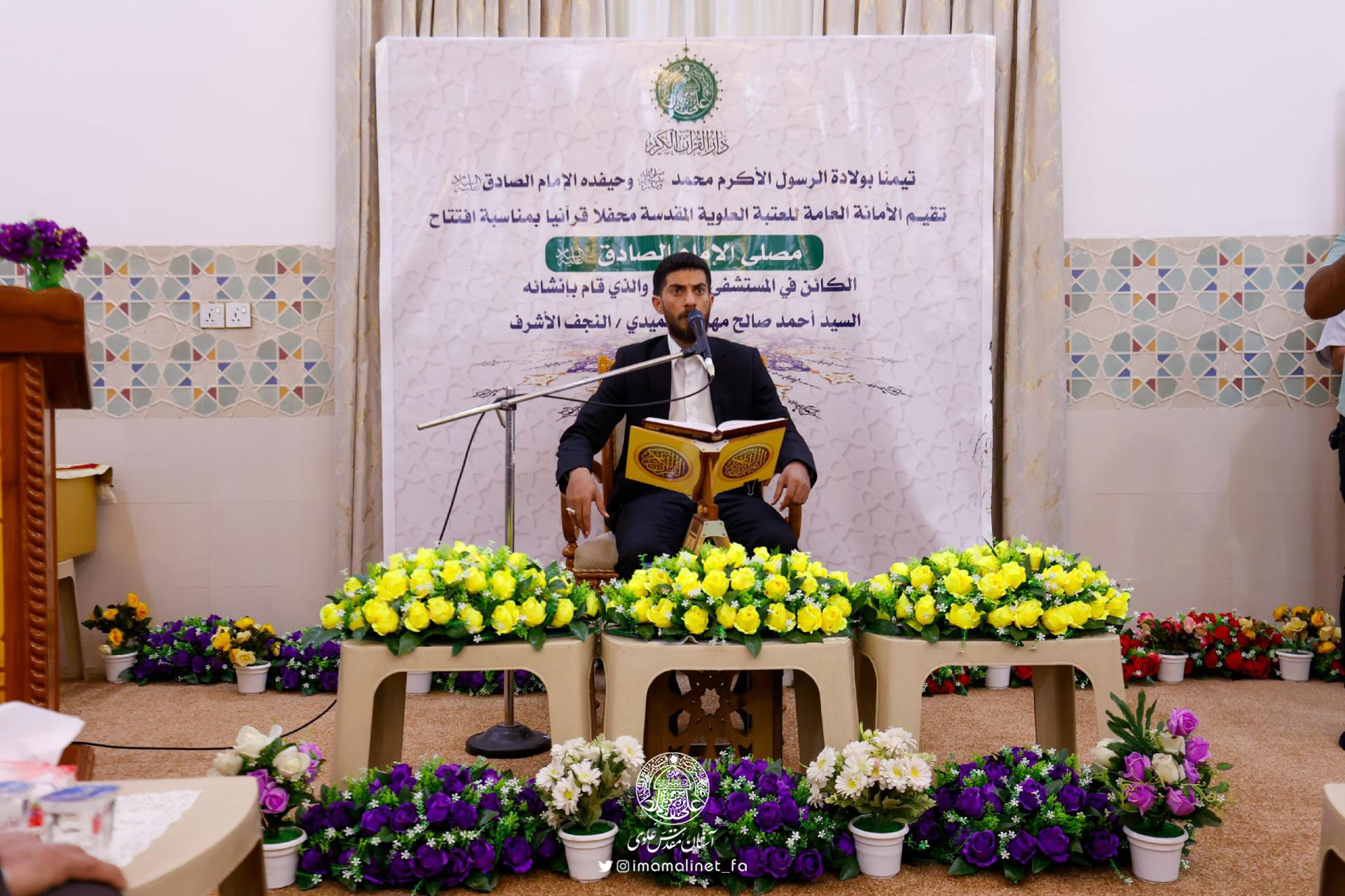 دارالقرآن الکریم آستان مقدس علوی به مناسبت ولادت پیامبر اکرم صلیاللهعلیهوآله، امام صادق علیهالسلام و نیز افتتاح نمازخانه بیمارستان امام صادق علیهالسلام شهر حله محفلی قرآنی برگزار کرد.