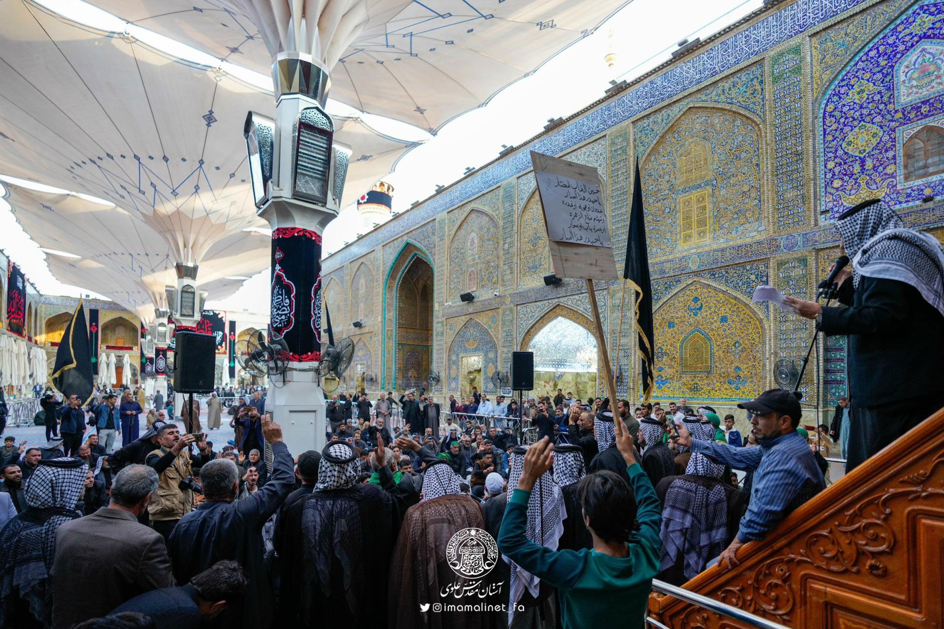 آستان مقدس علوی میزبان راهپیمایی سالیانه فاطمیه و دستههای عزاداری مختلفی بود که در سالروز شهادت سرور بانوان دو جهان، حضرت فاطمه زهرا سلاماللهعلیها برای سوگواری به حرم امیرالمؤمنین عليهالسلام مشرف شده بودند. این راهپیمایی با مشارکت «آیتالله شیخ بشیر نجفی» و جمعی از زائران برگزار شد.