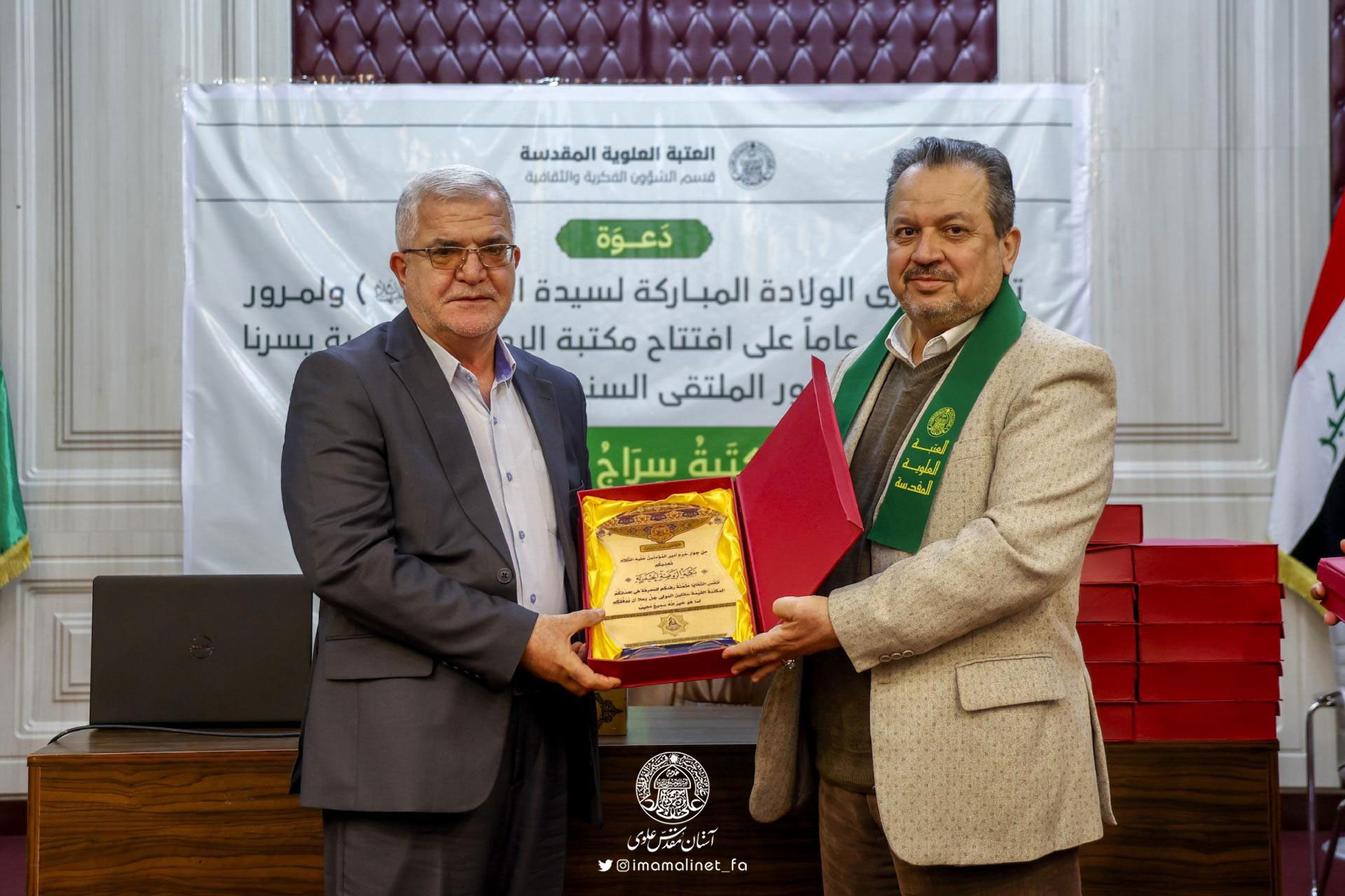 وی ادامه داد: «پس از سقوط رژیم بعث مراحل مختلفی بر این کتابخانه گذشته است. ابتدا، در سال ۱۳۸۳ هجری شمسی و بنابر توصیه مراجع عظام، بهویژه آیتاللهالعظمی سیدعلی سیستانی دامظله، در صحن مطهر بازگشایی شد. پس از آن، به مکان جدید در صحن حضرت فاطمه سلاماللهعلیها منتقل شد.»