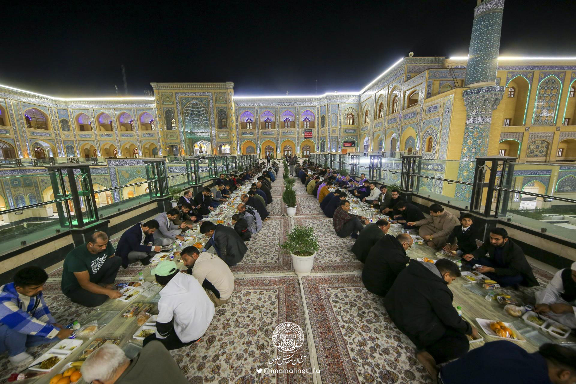 مهمانسرای آستان مقدس علوی، در شب ولادت امیرالمؤمنینعلیهالسلام ضیافت شام بزرگی در صحن حضرت فاطمهعلیهاالسلام با حضور بیش از ۴ هزار زائر برگزار کرد.