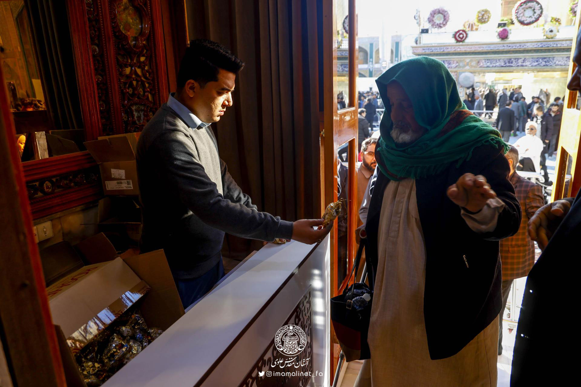 جد افزود: «امور هدایا و نذورات این هدایا را با هماهنگی و همکاری بخش‌های رسانه، انتظامات، امور خدمات و بخش‌های مختلف آستان بین زائران توزیع کرد.»