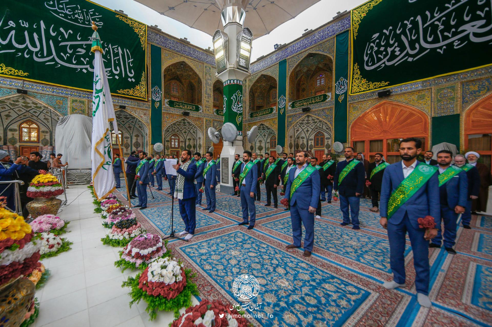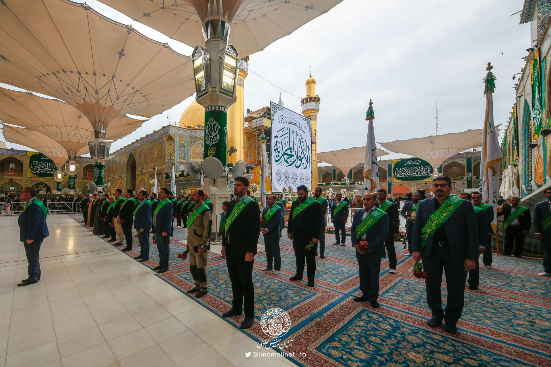 خادمان آستان مقدس علوی با حضور انبوهی از زائران و دوستداران اهلبیتعلیهمالسلام، سوم شعبان مصادف با ولادت امام حسینعلیهالسلام، سبط رسولاکرم(ص) را طی مراسم صبحگاهی در صحنوسرای امیرالمؤمنینعلیهالسلام جشن گرفتند.