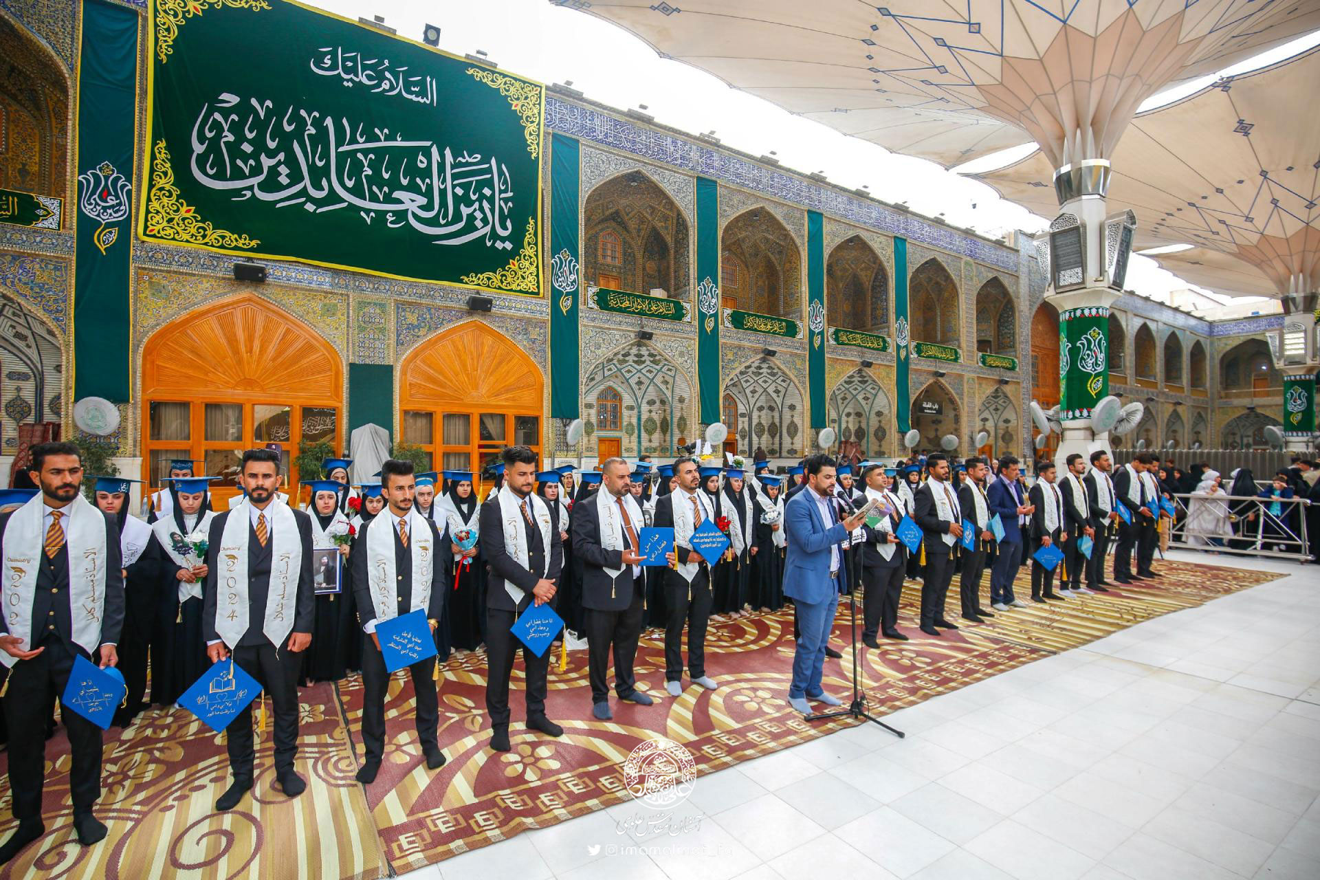 ۱۵۰ نفر از دانشآموختگان رشته شیمی دانشکده معارف دانشگاه «قادسیه» در مراسمی با حضور اساتید این دانشجویان و خانوادههای دانشآموختگان در حرم امیرالمؤمنین(ع) سوگندنامه دانشآموختگیشان را قرائت کردند.