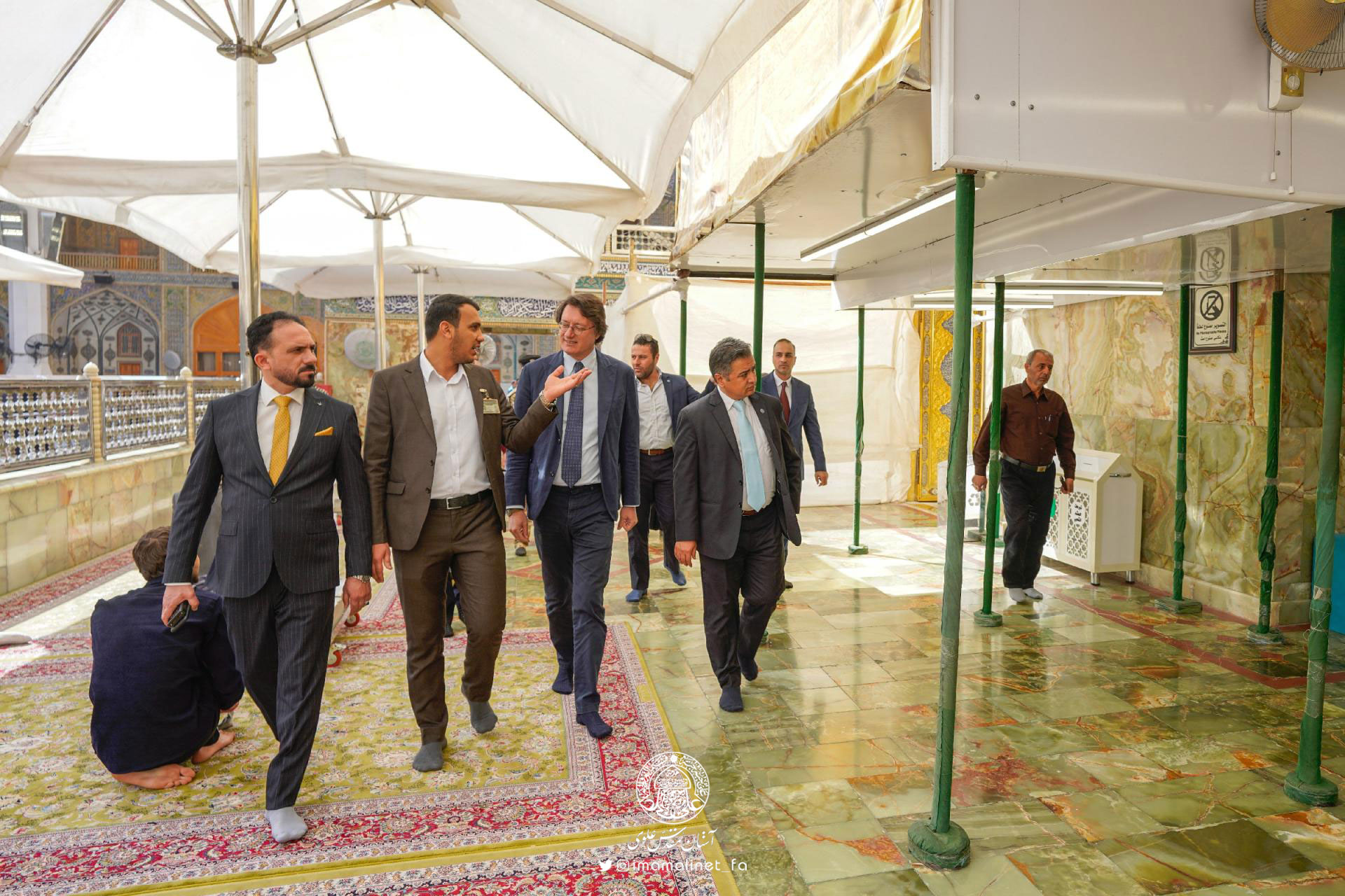 «صاحب بصیصی»، مسئول روابط عمومی آستان مقدس علوی در این خصوص گفت: «ما پذیرای هیئتی باحضور "پائولو فونتانی"، مدیر یونسکو در عراق بودیم و هیئت را در بازدید از آثار باستانی و عمرانی رواق حرم مطهر و مکان‌های زیارتی و عبادتی صحن حضرت فاطمه(س) همراهی‌ کردیم.»