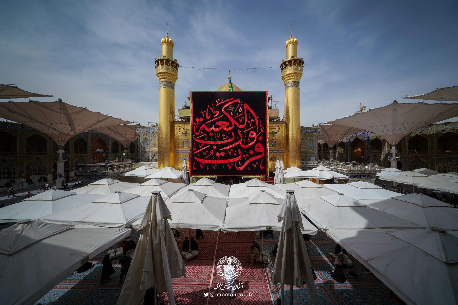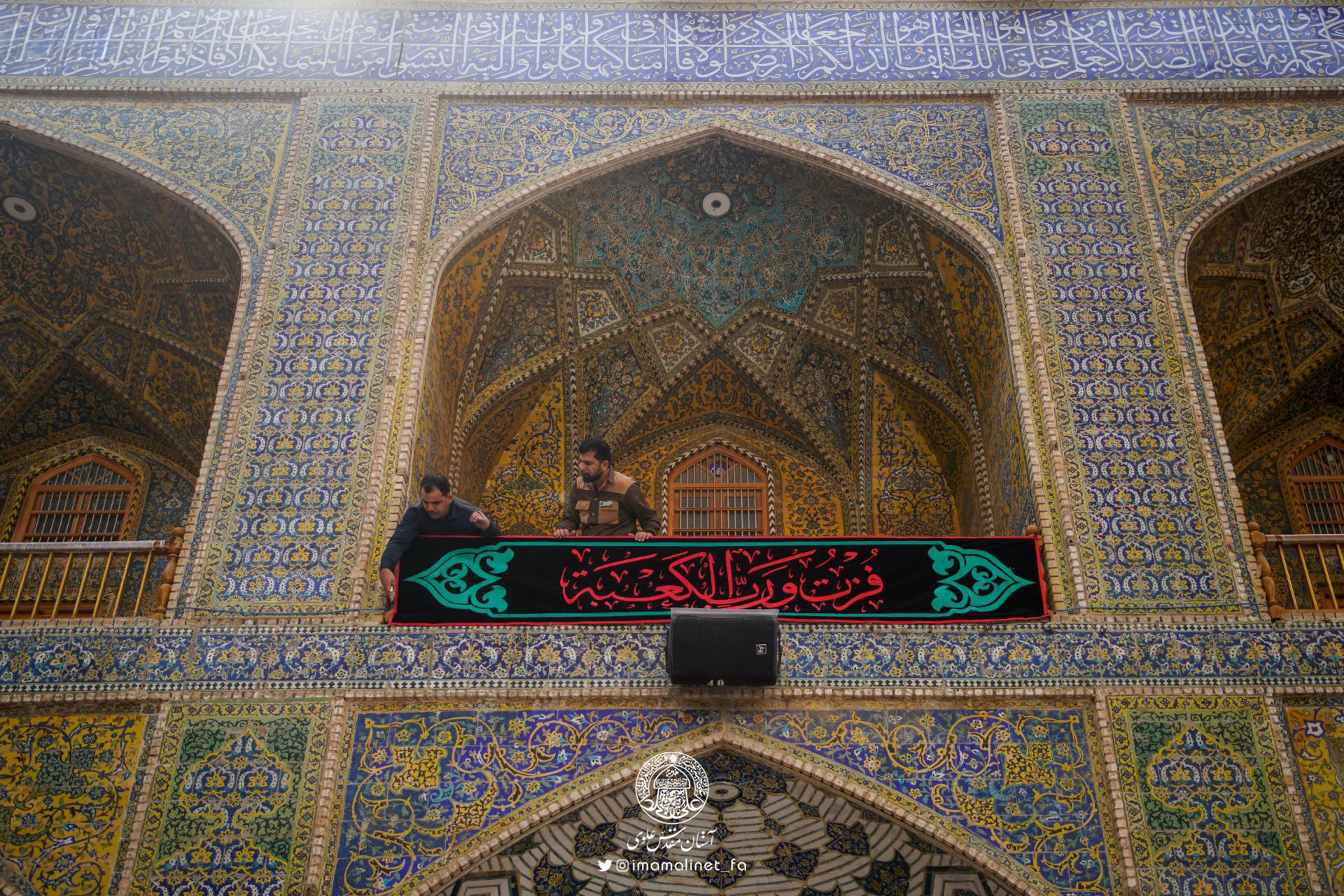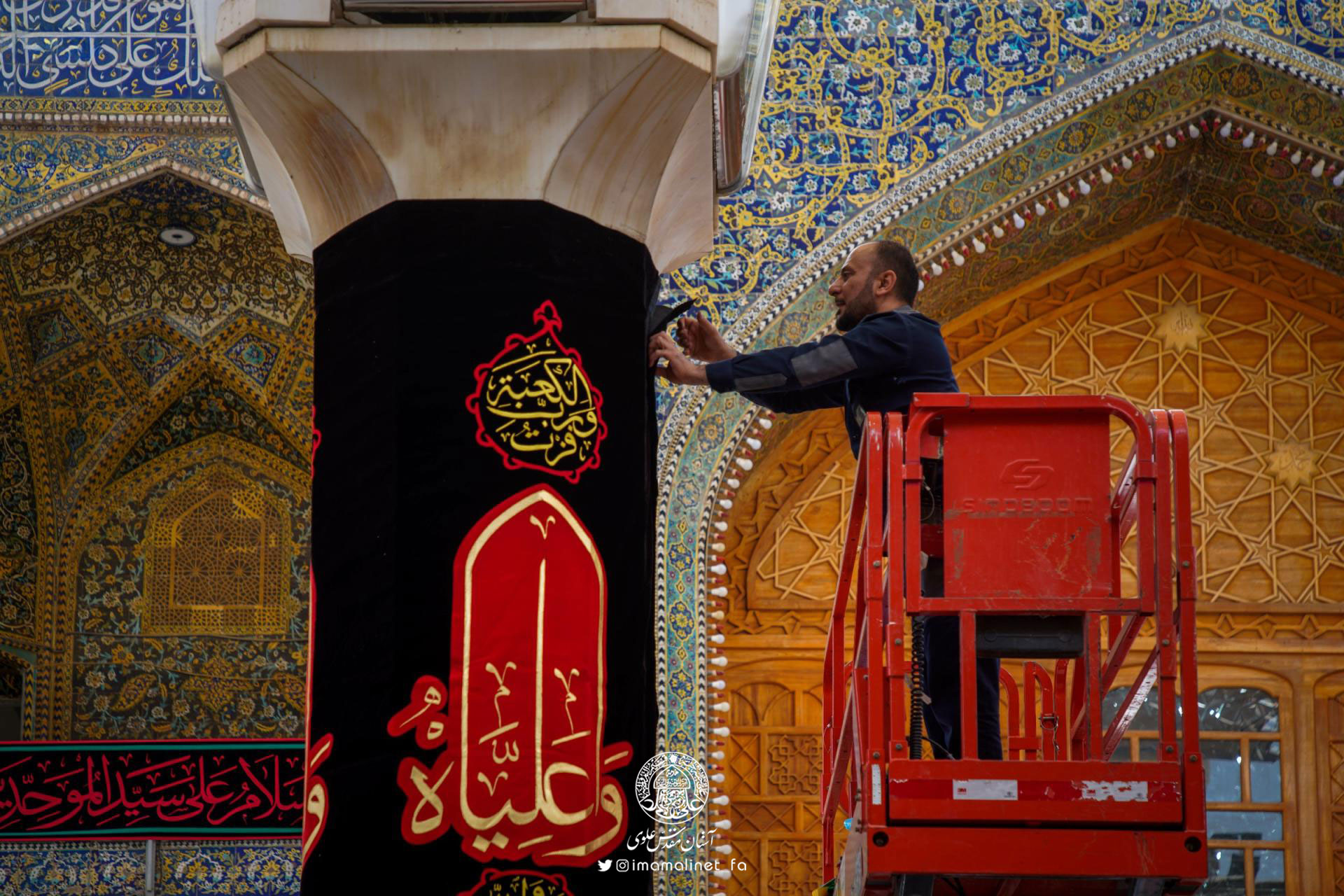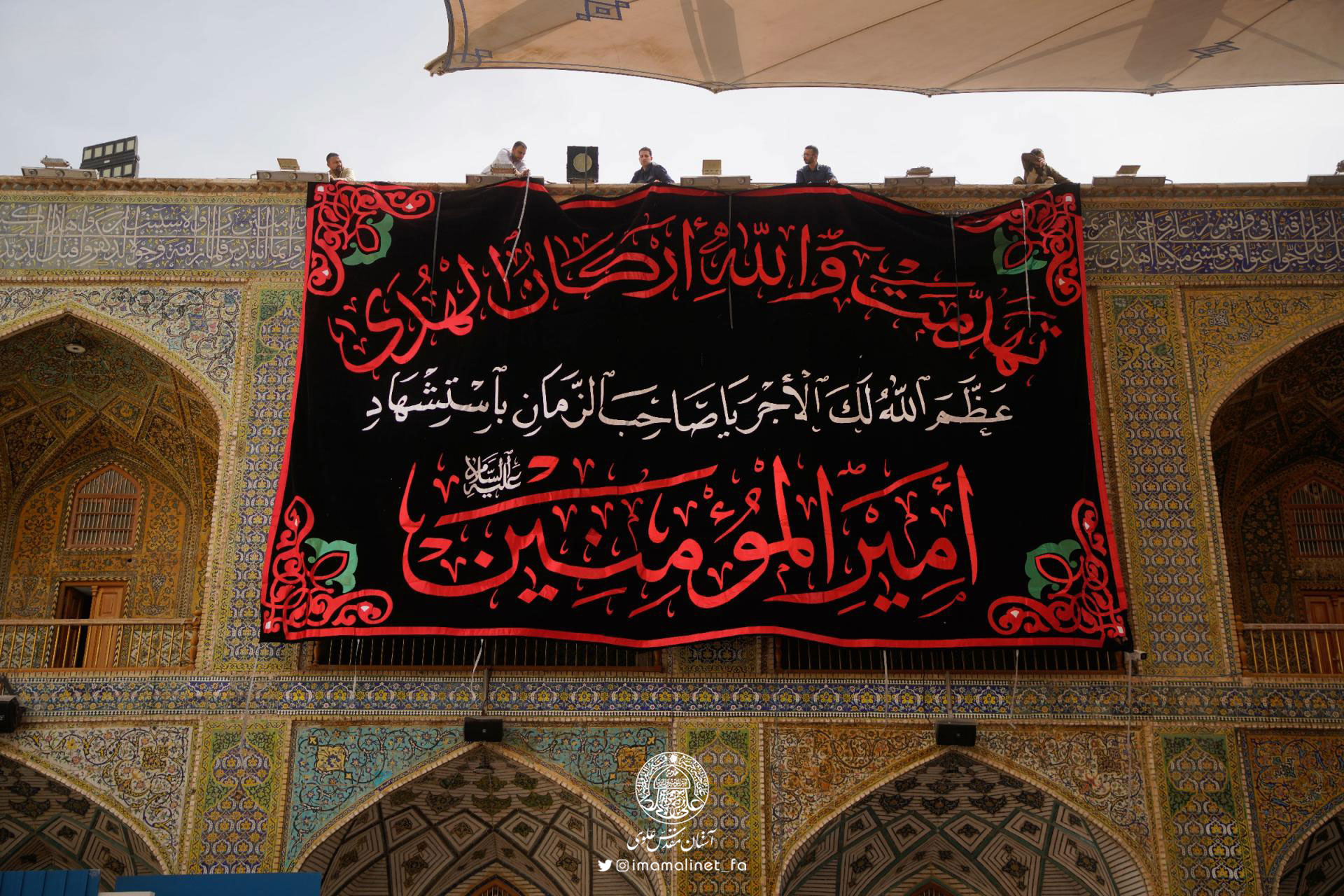 «حیدرعبدالله»، مسئول واحد خیاطی آستان علوی در این خصوص گفت: «پرچم‌های سیاه و بنرهایی منقش به نام و القاب امیرالمؤمنین‌علیه‌السلام در آستان مقدس نصب شد که بارزترین آن‌ها بنر ایوان طلایی به متراژ ۲۱۰ مترمربع است.»