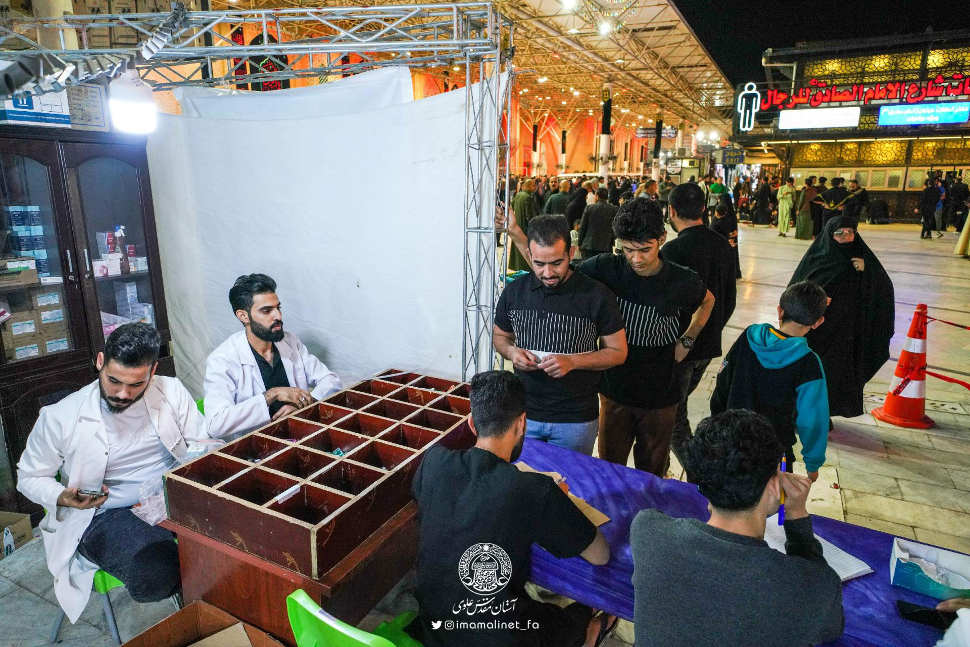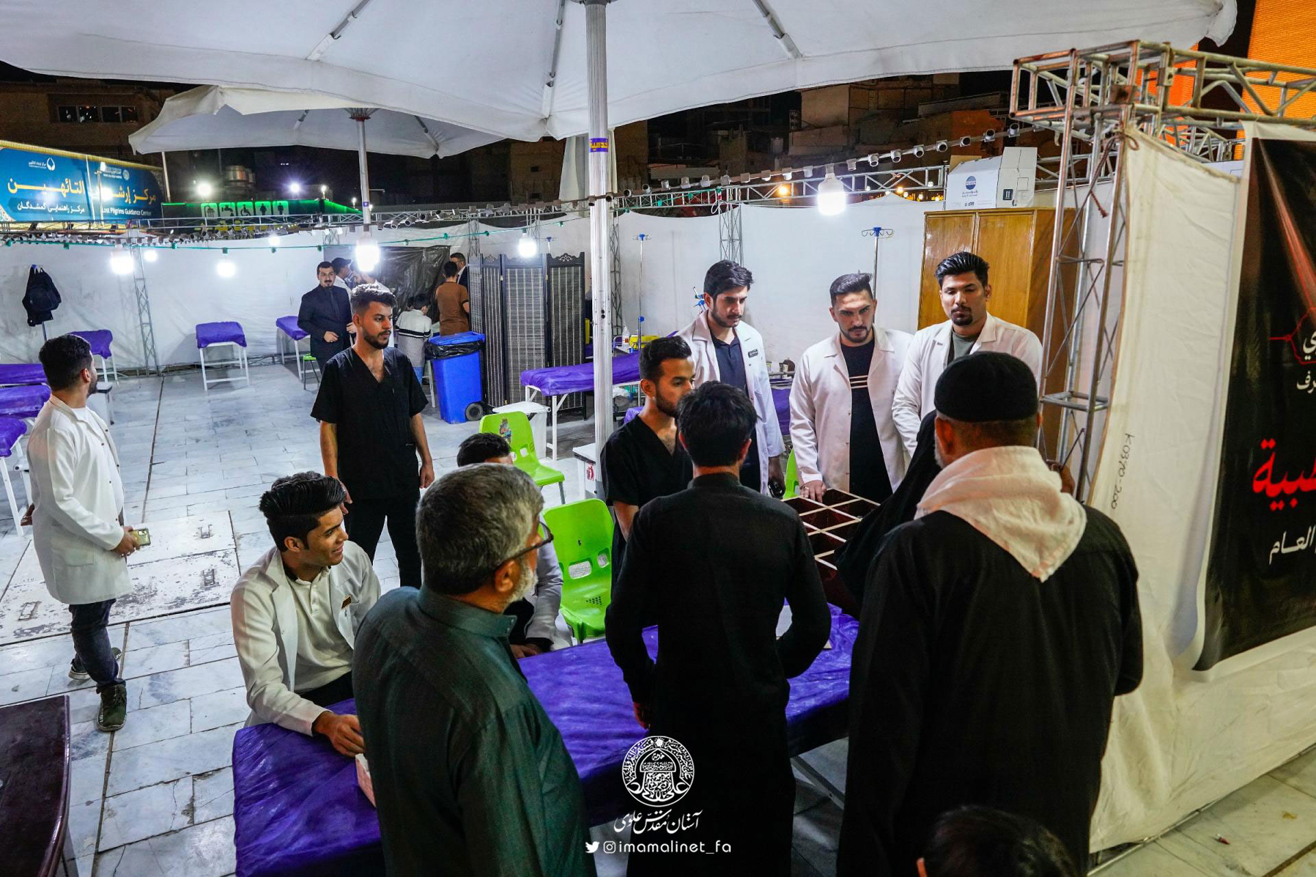 حدود ۵۰۰ نفر در بخش درمانی خدمت‌رسانی می‌کنند که شامل خادمان آستان مقدس علوی و کلیه کادرهای پرستاری، بهداشتی و خدماتی می‌شوند .این کادرهای پزشکی و درمانی در مراکز و تیم‌های مختلف پزشکی حضور خواهند یافت و هر تیم کاری طبق برنامه‌ای که با هماهنگی تولیت آستان علوی، وزارت بهداشت و مرکز بهداشت نجف تهیه و تنظیم شده است، وظایف خود را انجام می‌دهد.