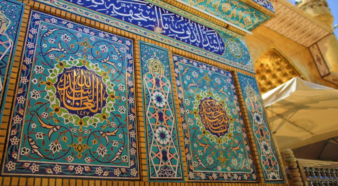 هنر کاشیکاری اسلامی روی دیوارهای حرم مطهر مقدس علوی تابلوهای بسیار زیبایی خلق کرده است.