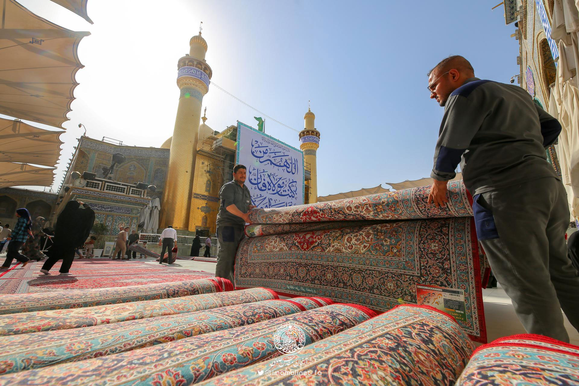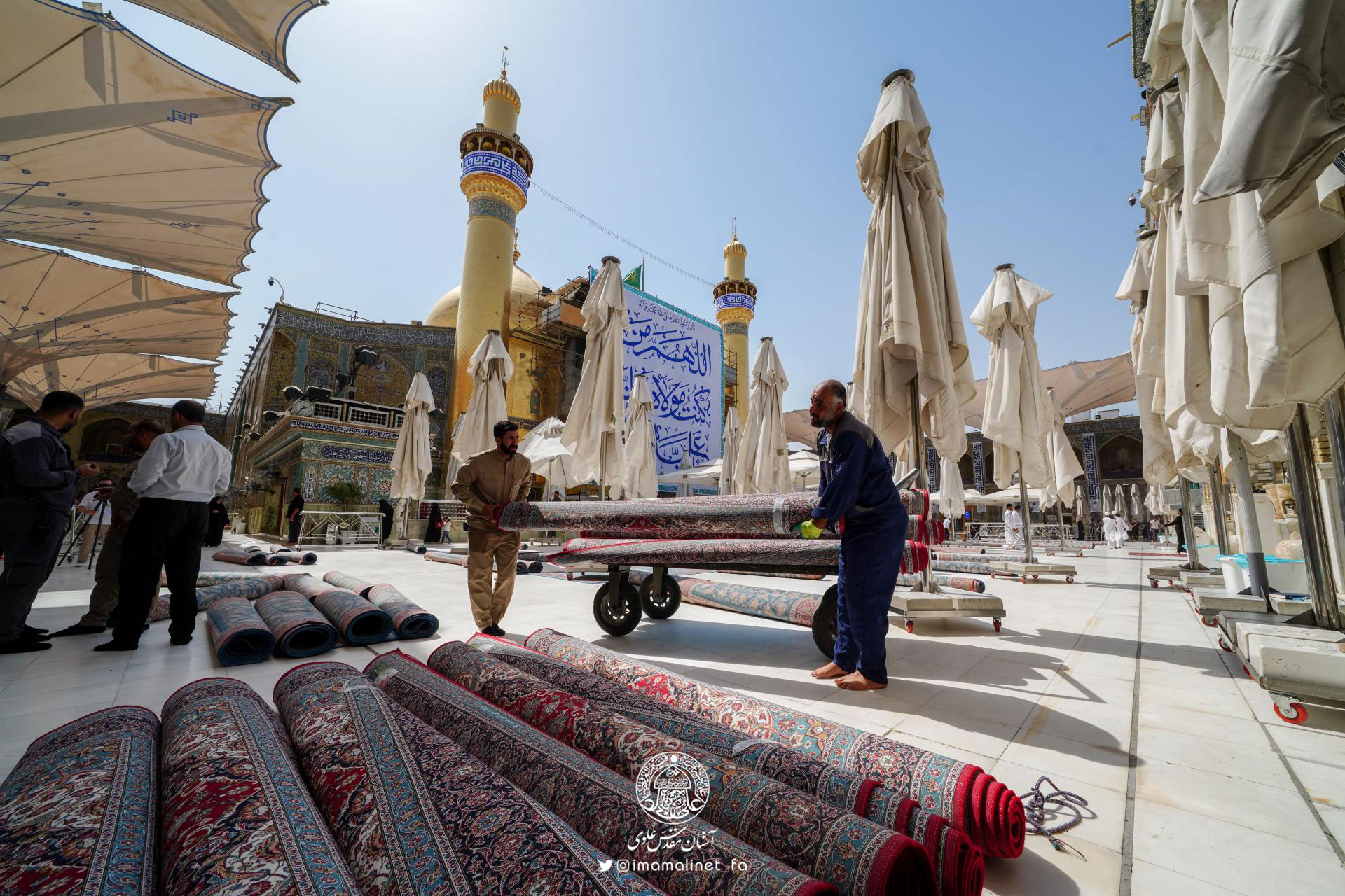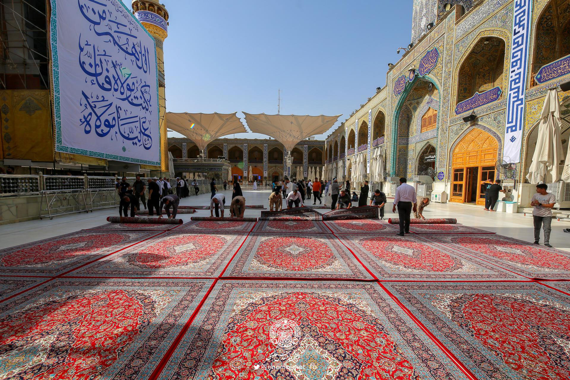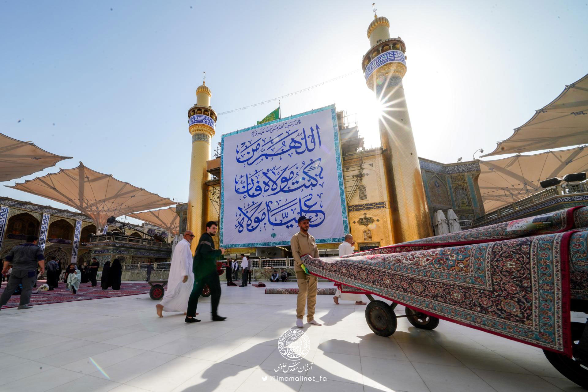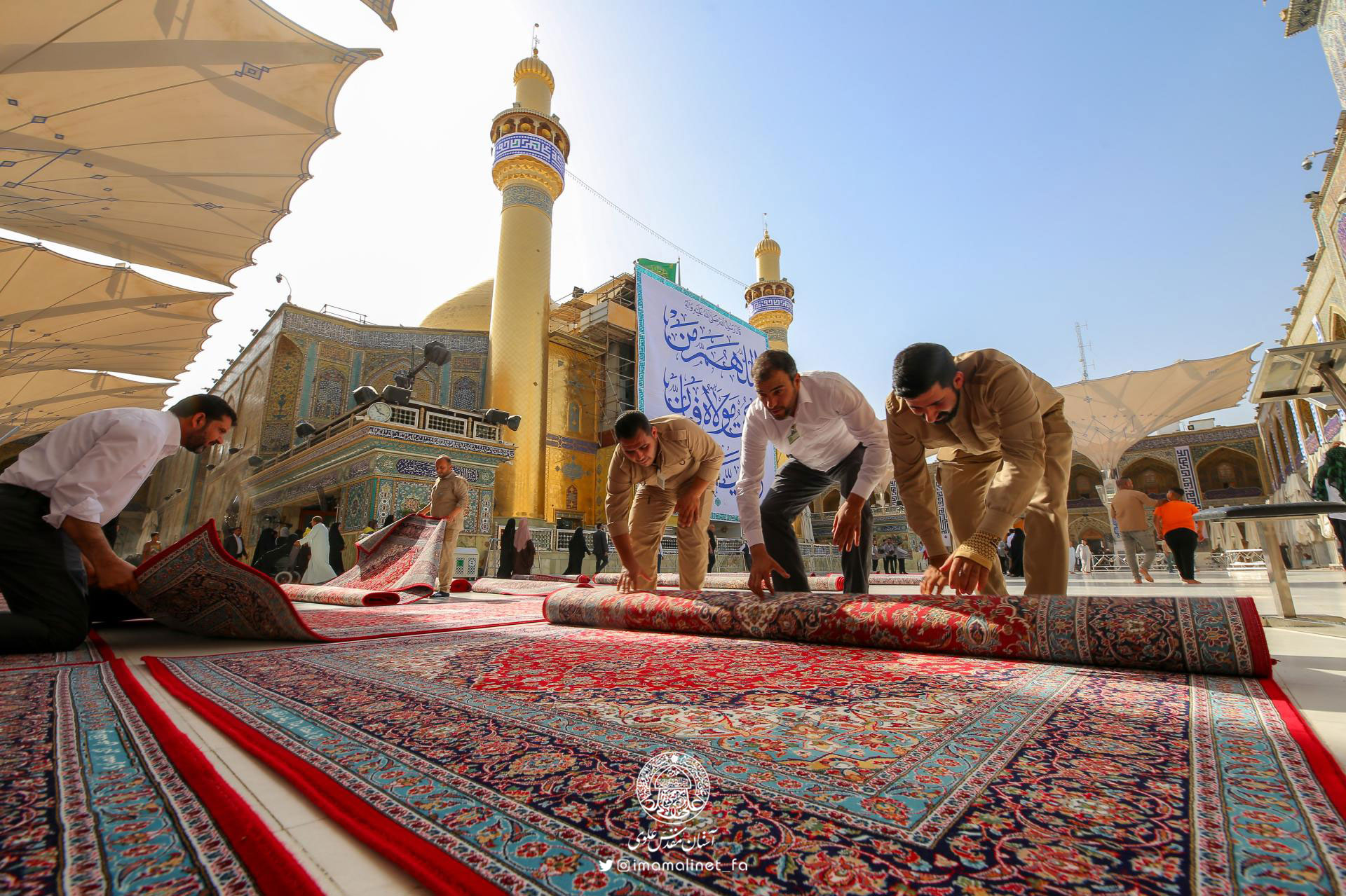در آستانه عید سعید غدیر و به همت تولیت آستان مقدس علوی، کادرهای معاونت امور خدمات این آستان مقدس اقدام به مفروش کردن صحن مطهر امیرالمؤمنین علیهالسلام با ۵۲۰ تخته فرش نفیس به مساحت بیش از ۳ هزار مترمربع کردند.