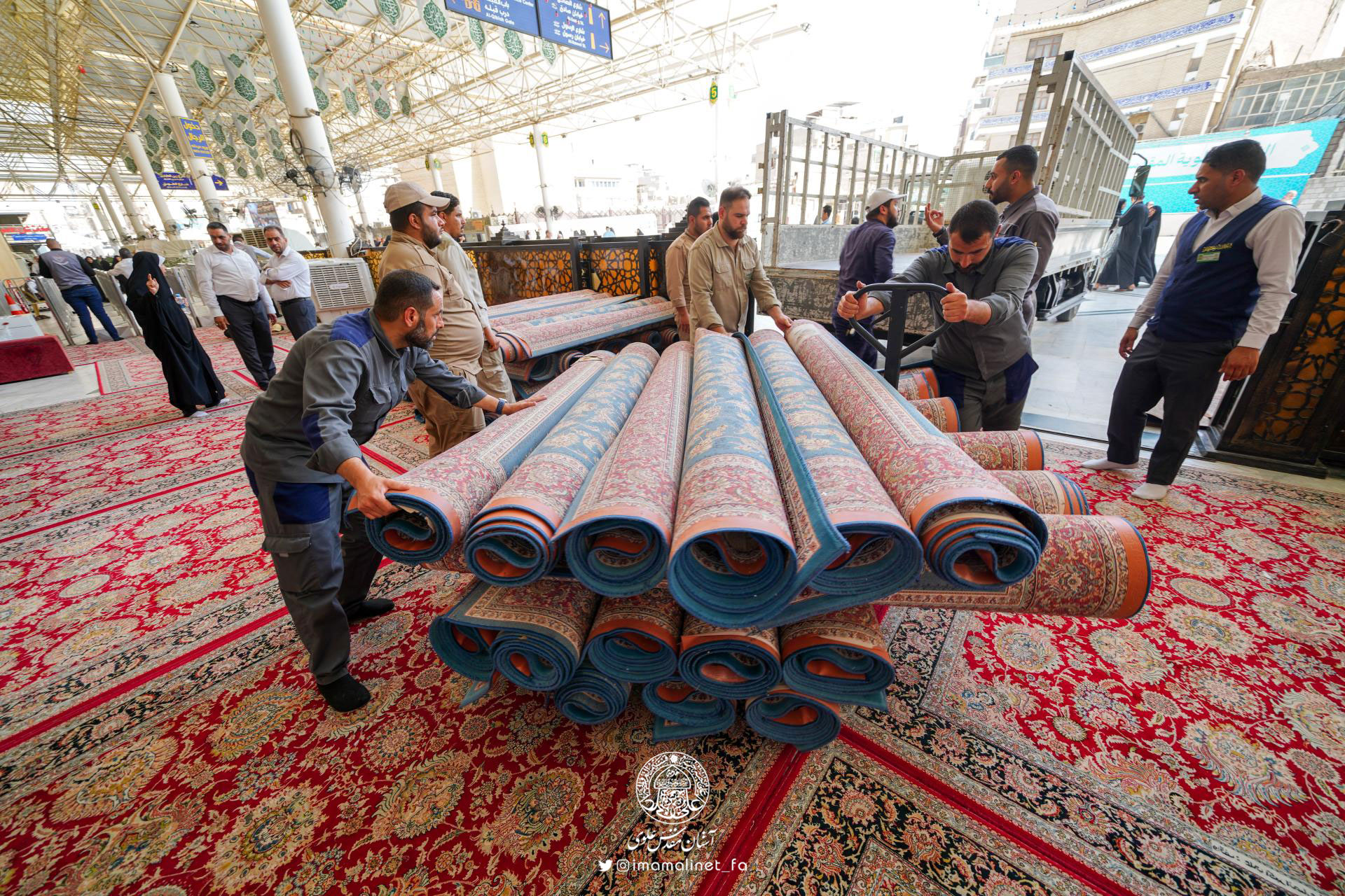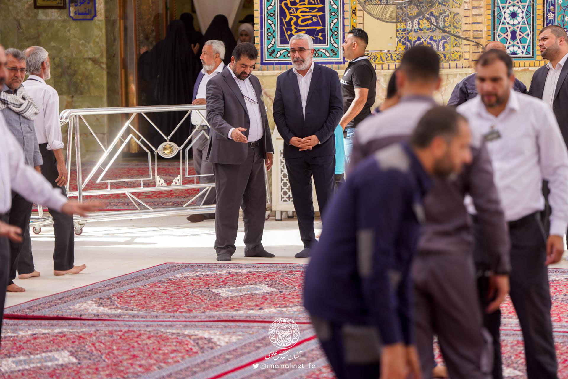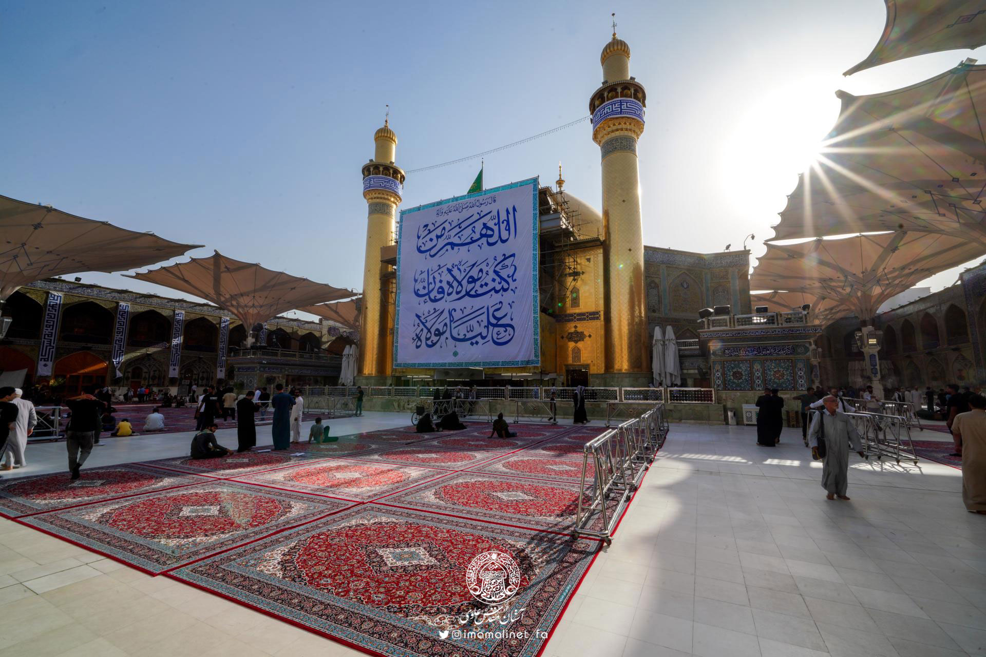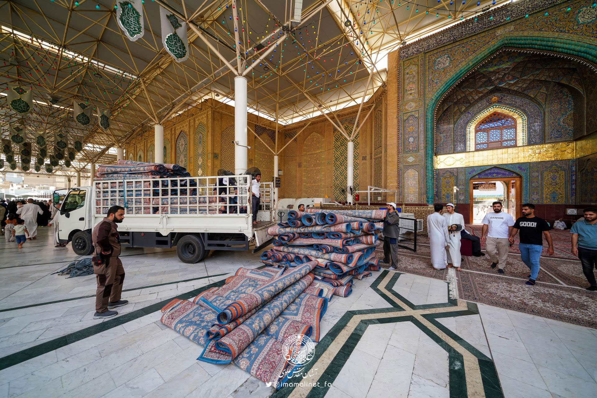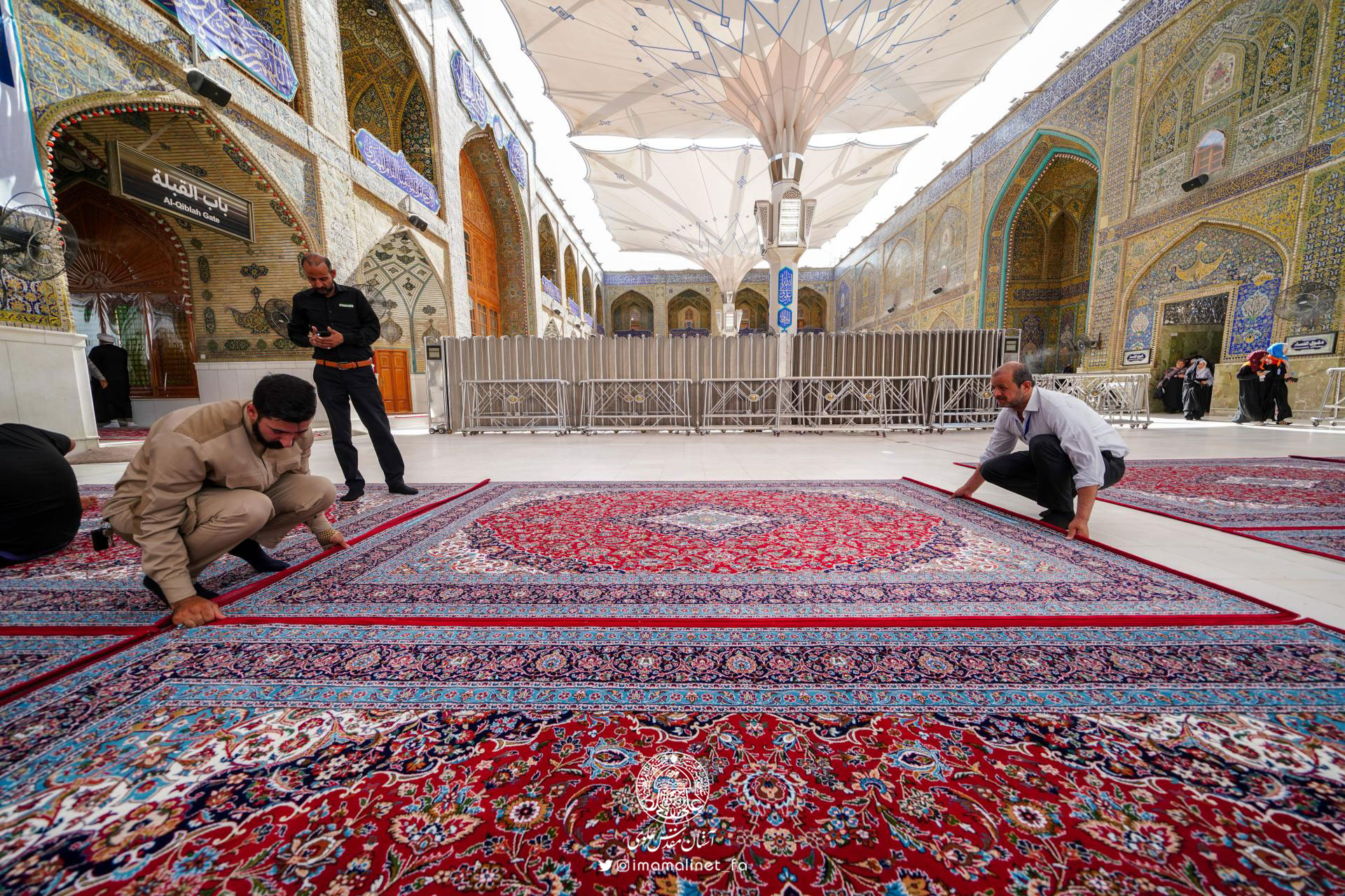 در آستانه عید سعید غدیر و به همت تولیت آستان مقدس علوی، کادرهای معاونت امور خدمات این آستان مقدس اقدام به مفروش کردن صحن مطهر امیرالمؤمنین علیهالسلام با ۵۲۰ تخته فرش نفیس به مساحت بیش از ۳ هزار مترمربع کردند.
