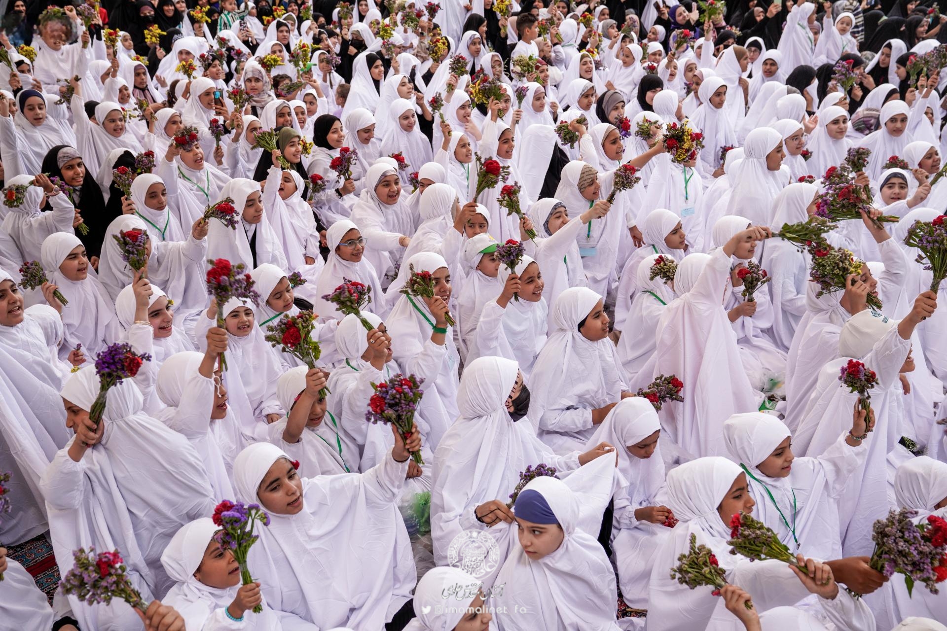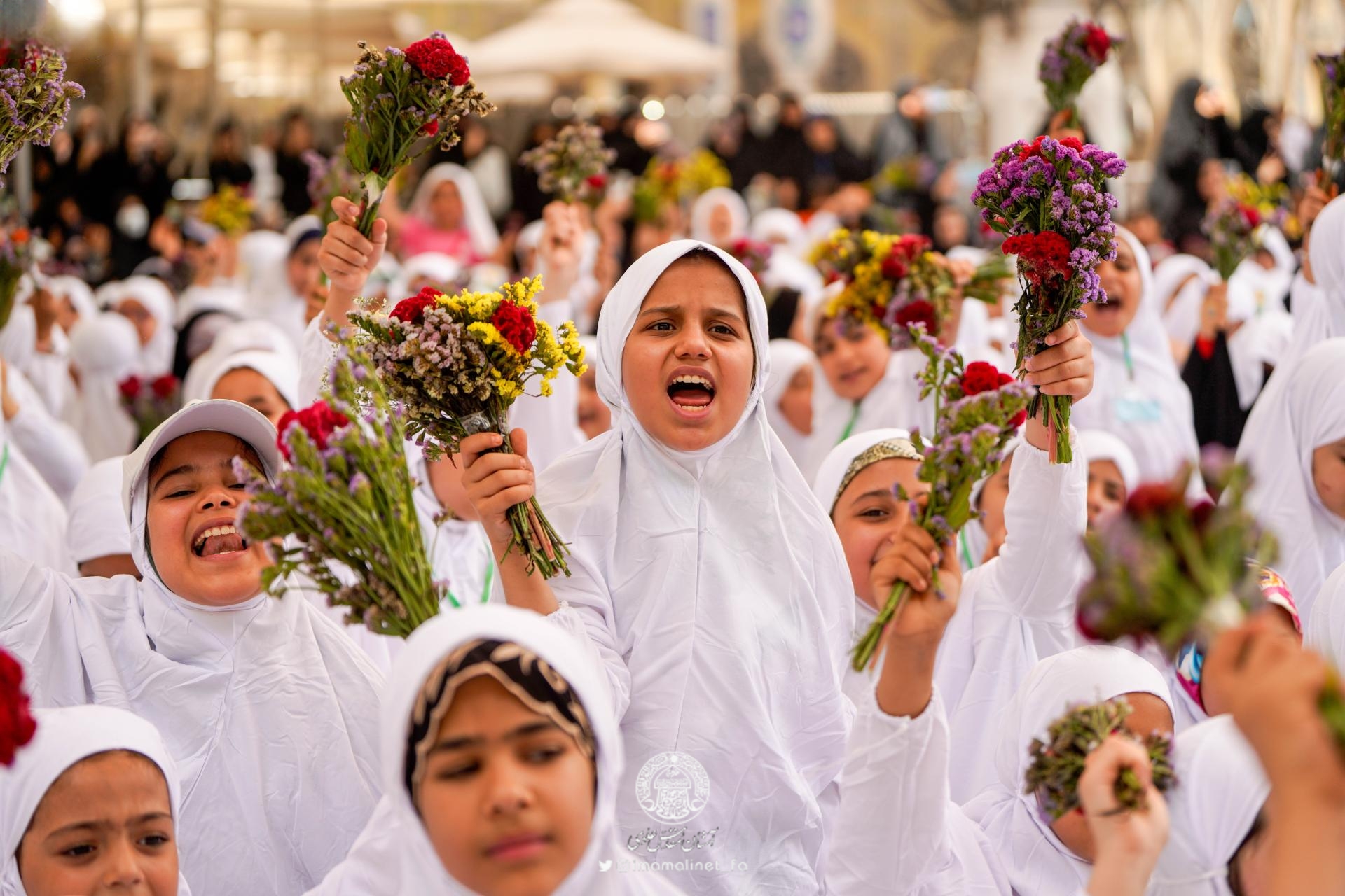 وی خاطرنشان کرد: «درخلال این راهپیمایی دسته‌های گل‌ رز و پرچم غدیر به اهتزاز درآمد و ایتام به مناسبت این عید بزرگ الهی، در محضر حضرت امیرالمؤمنین علیه‌السلام شعار وفاداری سردادند.»