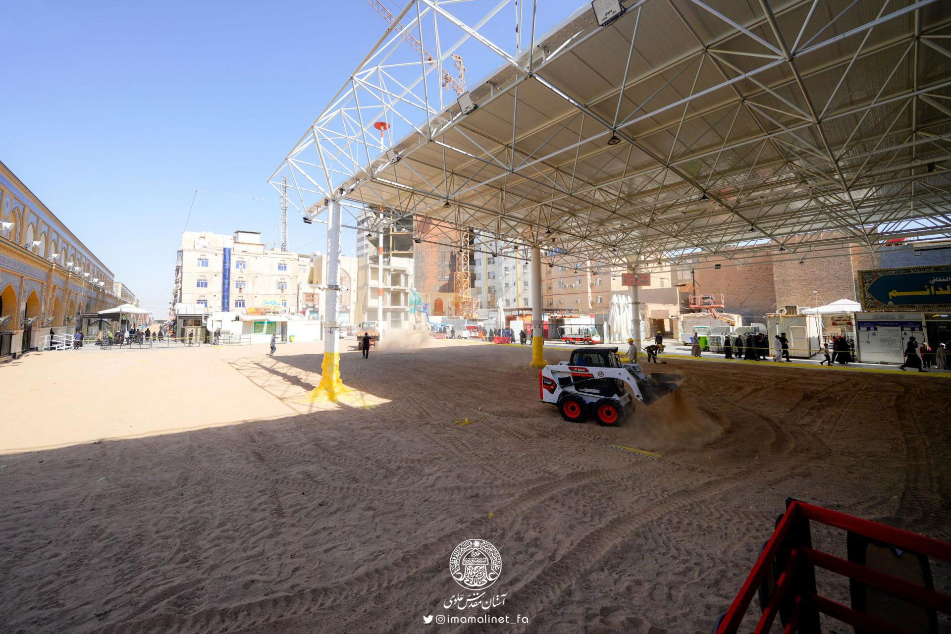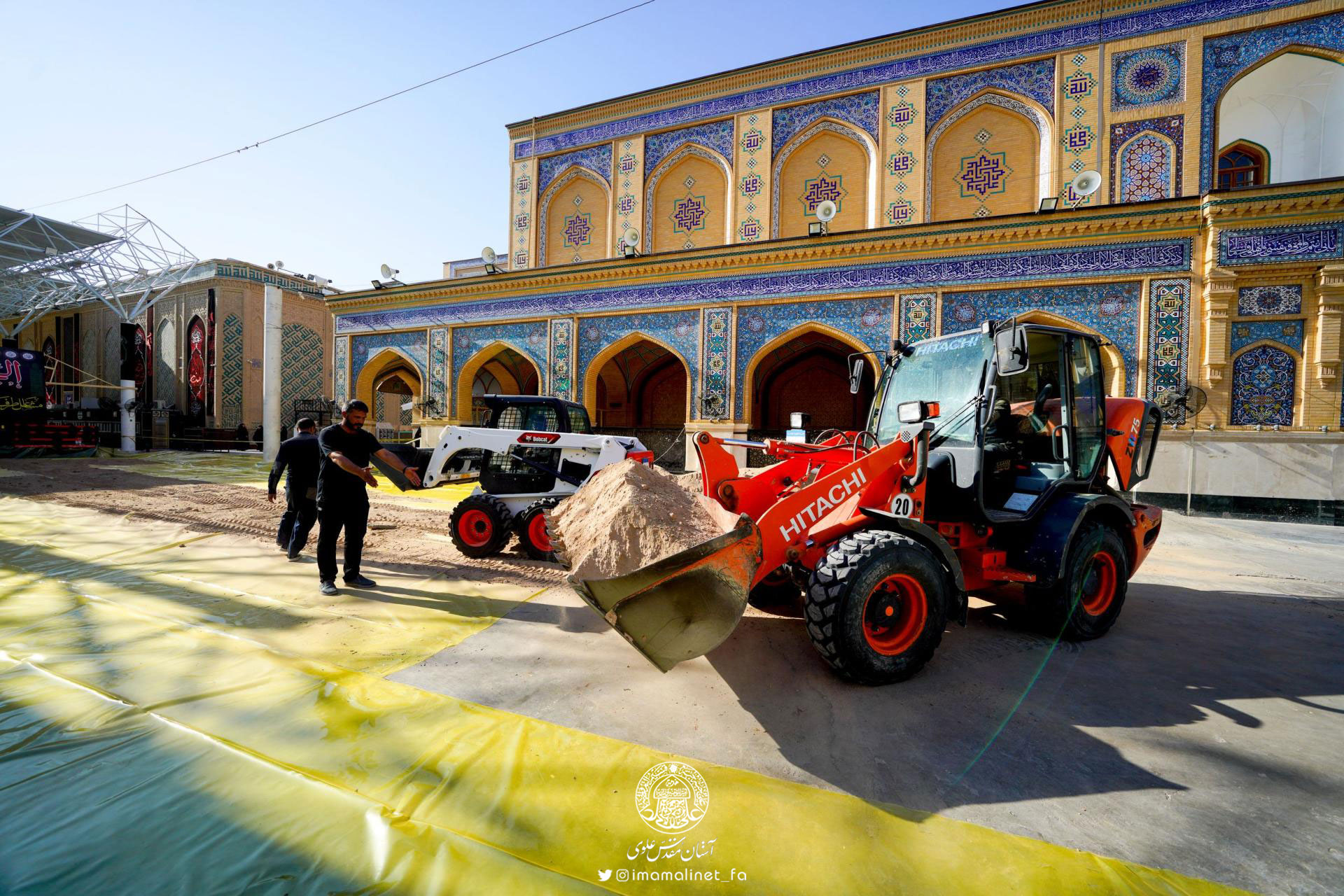 وی در این خصوص اشاره کرد: «فرایند آمادهسازی محل مشعلگردانی شامل پوشاندن پوشش منطقه با نایلون و سپس ریختن خاک و شن روی زمین است. این اقدامات جهت فراهمسازی یک محیط مناسب و محافظت از سنگهای مرمری صورت میگیرد که محل استراحت زائران است.»