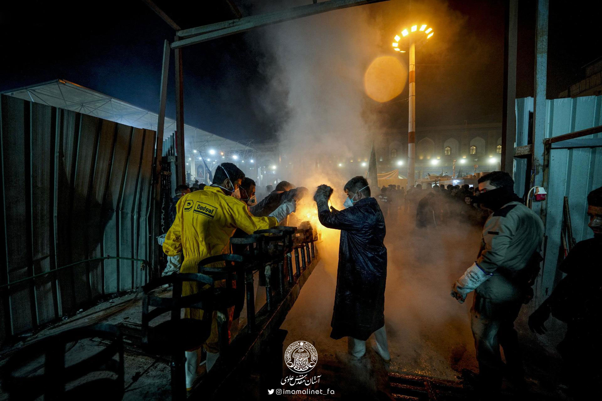 «سعد صبار» مسئول بخش دفاع مدنی آستان مقدس علوی در این خصوص اظهار داشت: «بخش دفاع مدنی وابسته به بخش تجهیزات آستان مقدس علوی، عملیات استقرار نیروهای آتشنشانی در آستان مقدس علوی، بخش قدیمی شهر نجف اشرف و خیابانهای منتهی به مرقد مطهر امیرالمؤمنین علیهالسلام را آغاز کردهاند.»