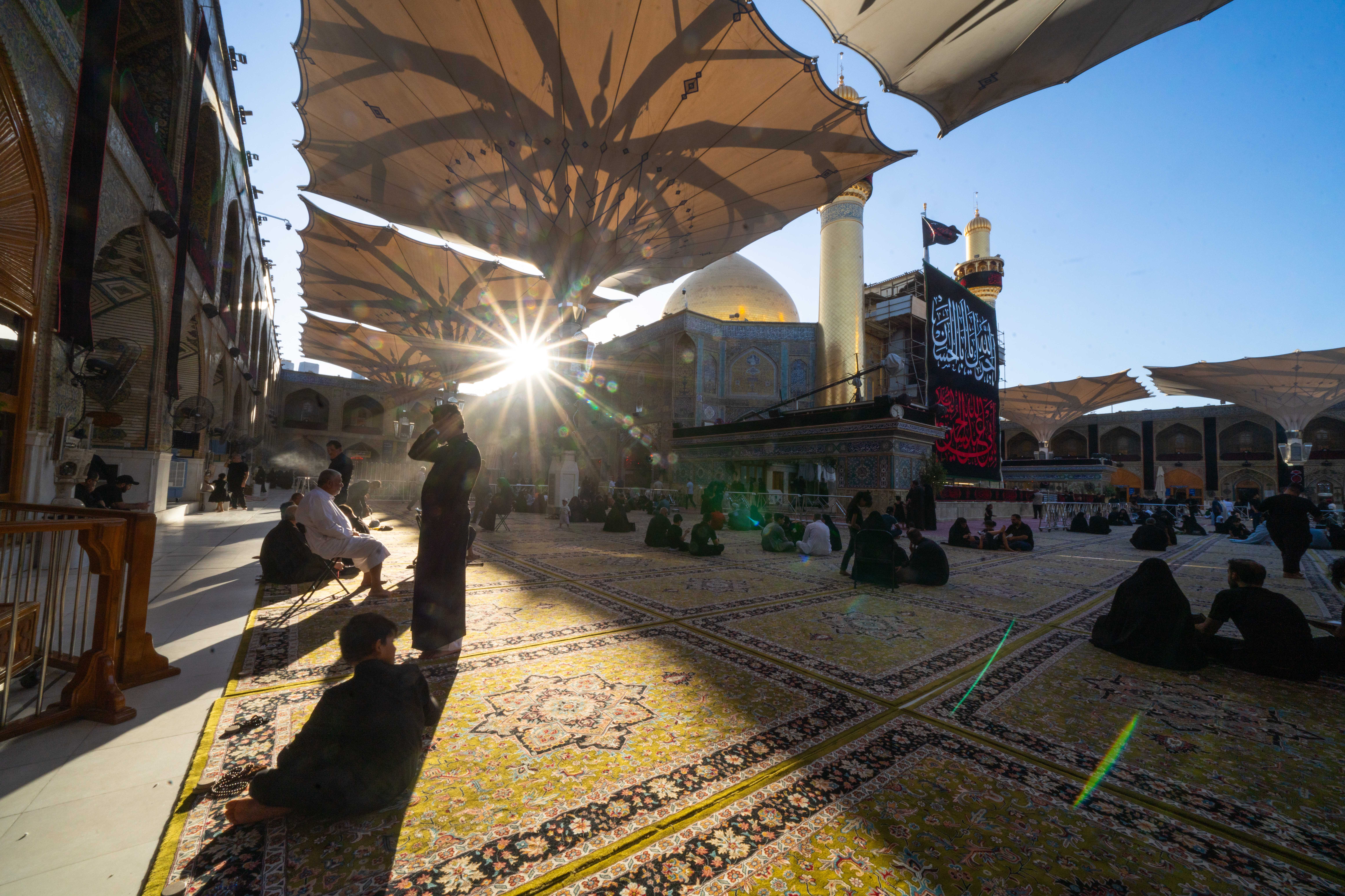 تابش خورشید از بین سایه‌بان و صحن حرم در ایام محرم