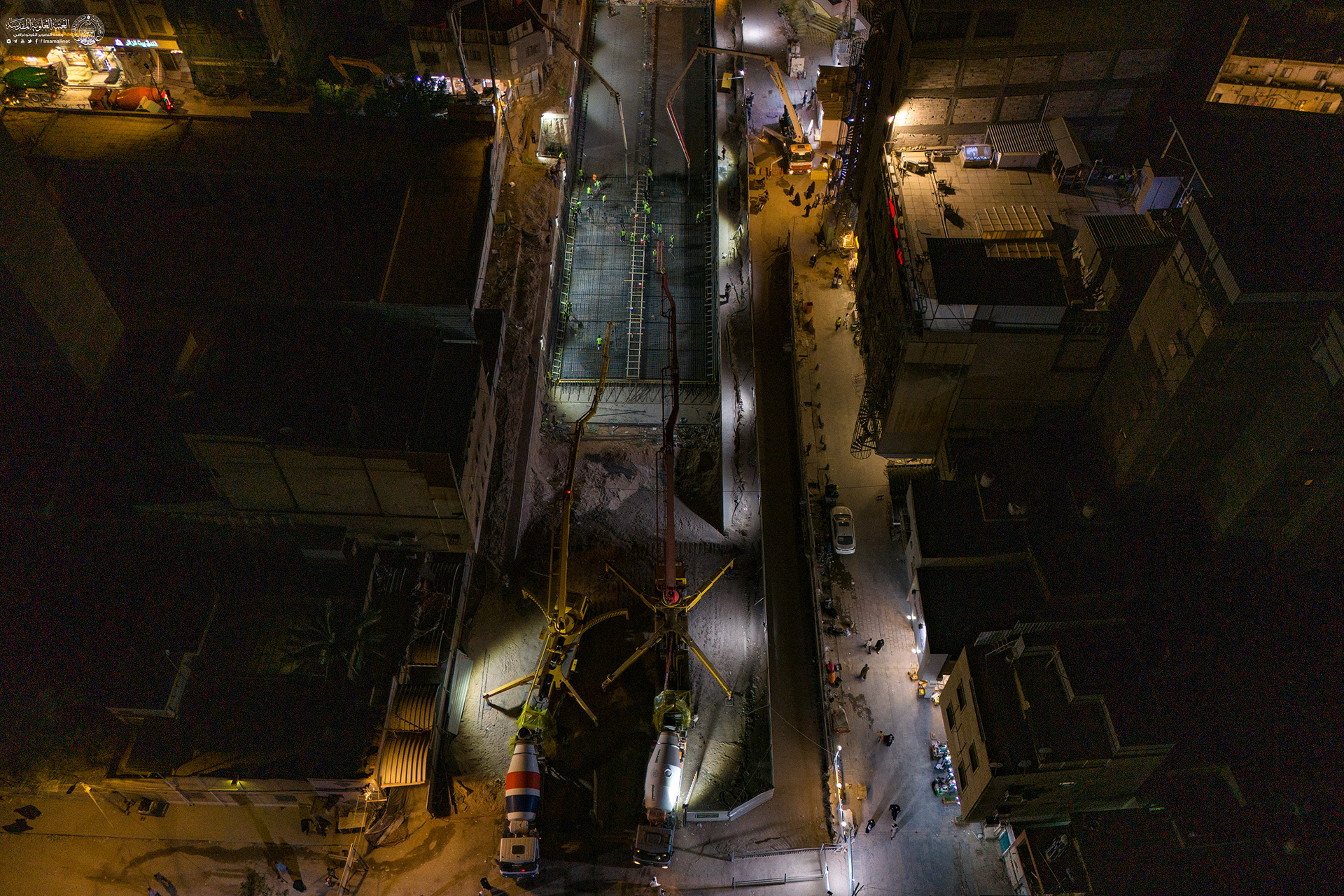 عملیات بتن‌ریزی با ماشین‌آلات تخصصی پروژۀ تقاطع غیر هم‌سطح شارع الرسول