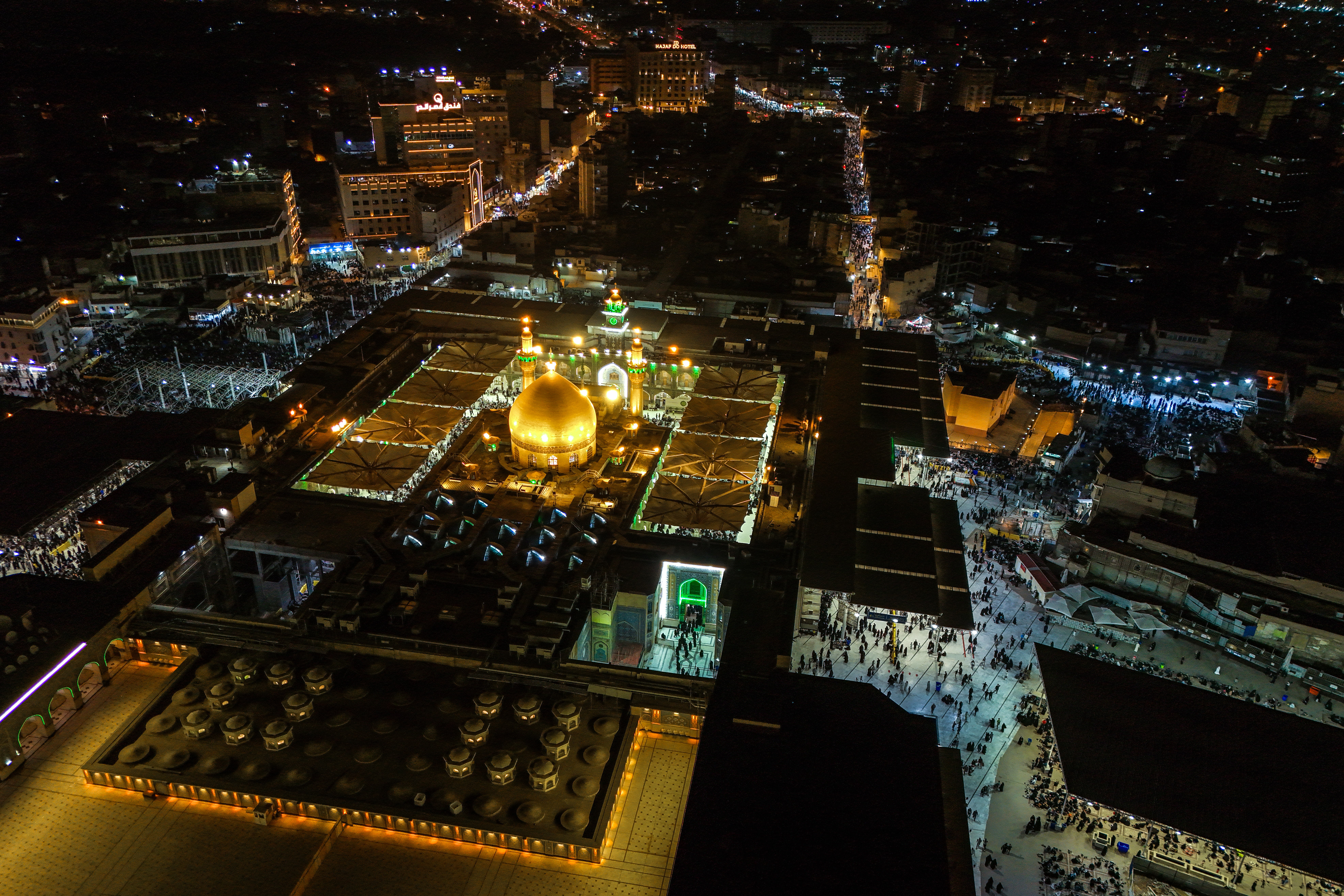 تصویر هوایی صحن و مرقد مطهر امیرالمؤمنین در شب