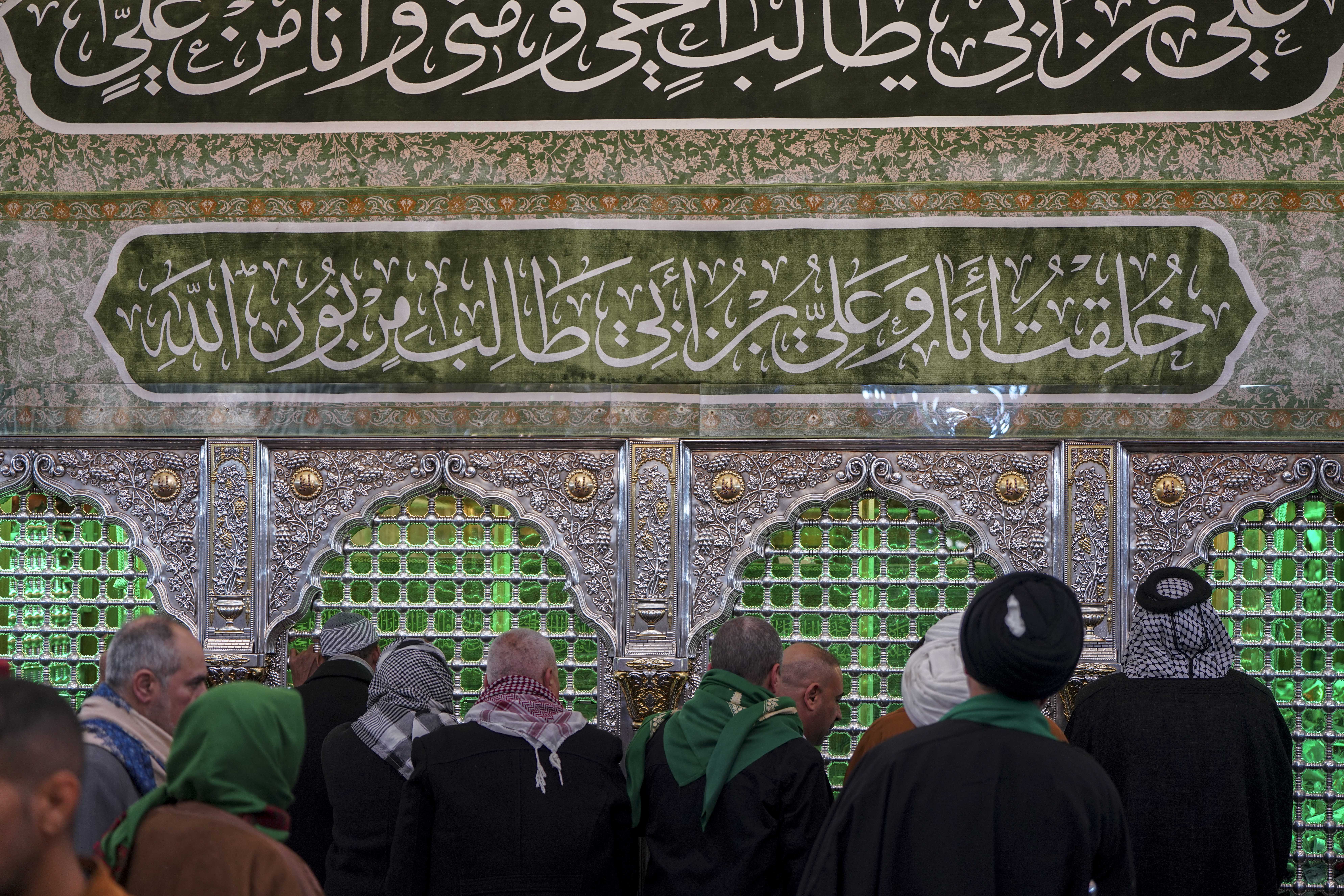 زائران نزد ضریح در ولادت امیرالمؤمنین علی علیه‌السلام